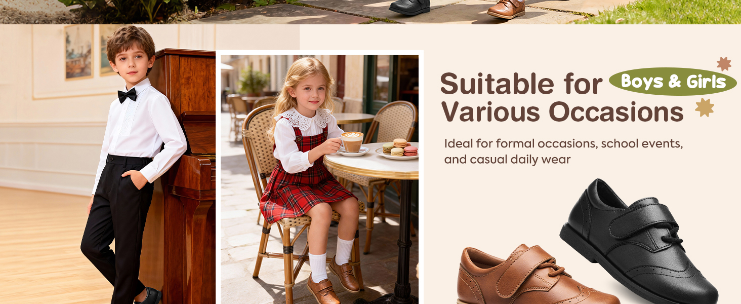 تصميم كلاسيكي وبسيط: تتميز أحذية أكسفورد للأولاد ذات المقدمة المستديرة بتصميم بلون ثابت لا يتأثر بمرور الزمن وأنيق. إنها مناسبة بشكل مثالي للمناسبات الرسمية وغير الرسمية وتتماشى بسهولة مع مجموعة واسعة من الملابس