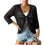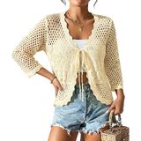 السمات: سترة نسائية قصيرة، سترة ناعمة بأكمام 3/4، سترات صوفية أمامية غير رسمية، أغطية كروشيه بوليرو، قمصان صلبة خفيفة الوزن للسيدات. هذا القميص المصنوع من الكروشيه مناسب طوال العام. أنها تغطي الجزء العلوي من الذراعين بشكل جيد.