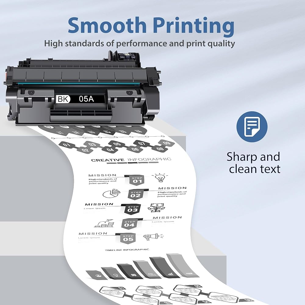 • مطبوعات احترافية: حبر 05A متوافق مع خراطيش حبر HP CE505A، مما يضمن إخراج المستندات والصور والرسومات دائمًا بنص حاد ونتائج ثابتة ومستقرة