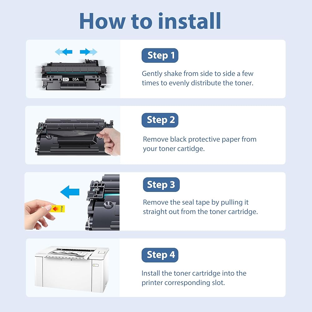 • الاستخدام على نطاق واسع: خراطيش الحبر 05A مع رقائق ترقية لتوفير التوافق الفعال. يستخدم على نطاق واسع في المكتب، المنزل، المدرسة، البنك، المستشفى وغيرها من الأماكن، مناسب لاحتياجات الطباعة ذات الحجم الكبير