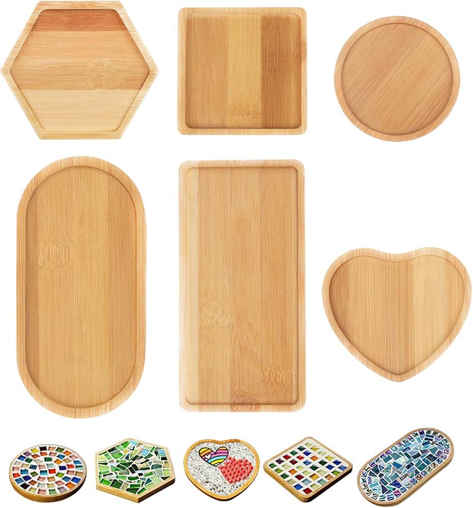 قواعد أكواب من الخيزران الفسيفسائي DIY، صواني قاعدة فارغة، قاعدة أكواب للشرب، قاعدة نباتية، لوحة فنية (6 عبوات، بلاط الفسيفساء غير متضمنة)