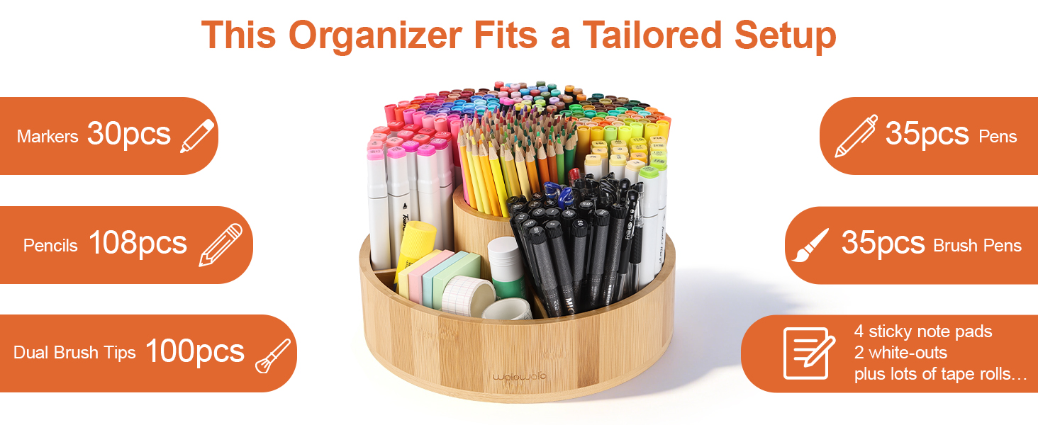 متعددة الاستخدامات للمنزل والمكتب والفصول الدراسية - هذه العلبة المكتبية متعددة الأغراض المصنوعة من الخيزران ليست فقط للوازم الفنية! يعمل كمنظم للإمدادات الفنية في الفصل الدراسي لترتيب المواد الطلابية، وحامل قرطاسية لغرفة الاجتماعات للاجتماعات، وعلبة أقلام للمكتب المنزلي لأساسيات العمل اليومية، وحامل عن بعد في غرفة المعيشة للتخلص من فوضى الأريكة. لمسة نهائية بسيطة تكمل أي نمط ديكور.