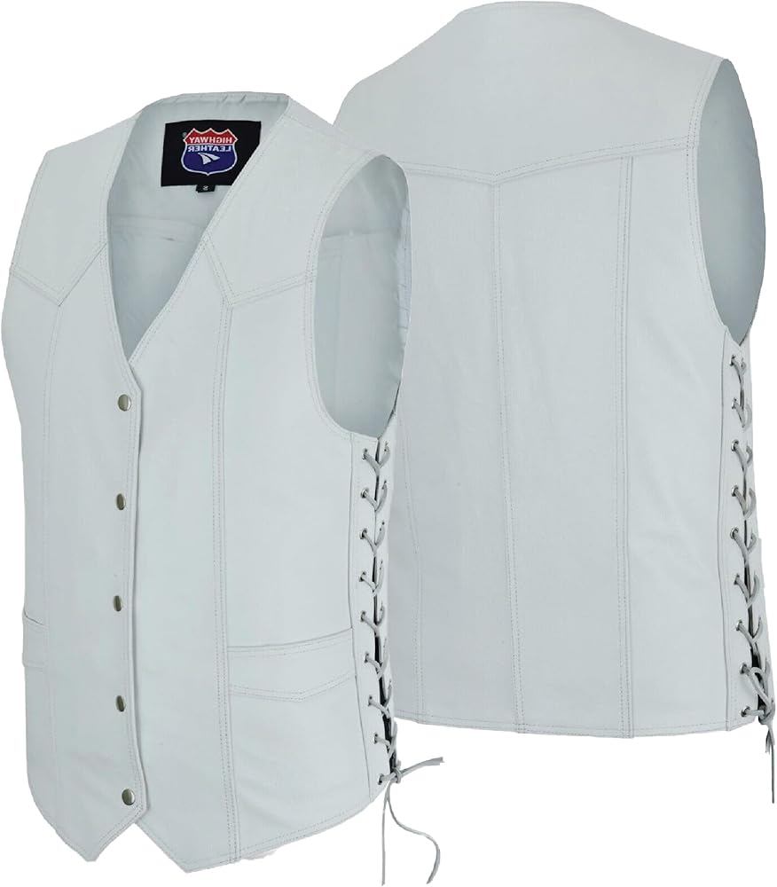 2 Concealed carry pockets, 2 OZ SOFT BUFFED COW 100% Genuine Natural Leather., ACP with holster & clip storage loop., All Seasons, Classic Look., Compatible with Vest Extenders., Heavy duty Hardware,, Industrial Polyester liner provides maximum mobility and comfort., Lace-up sides can adjust sizing, Pointed Bottom., Two outside Welt Pockets., Universal Snap Front Closure,, Very easy to sew large club colors, patches or custom embroidery., We manufacture our products with the highest quality materials, Western Style V-Neck, find better quality, fit, style, or construction, non rusting, noncorroding snaps., our quality motorcycle vests is GUARANTEED!