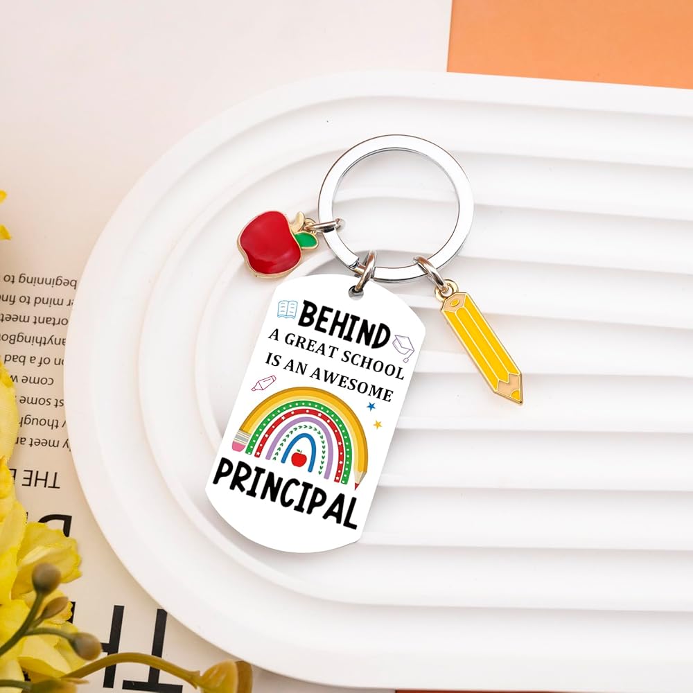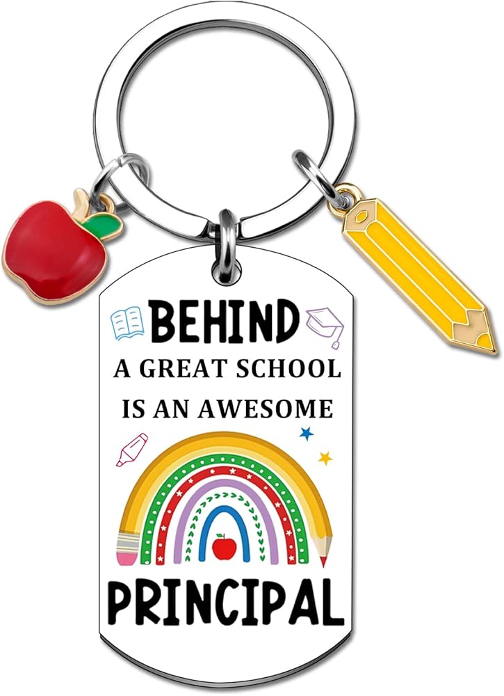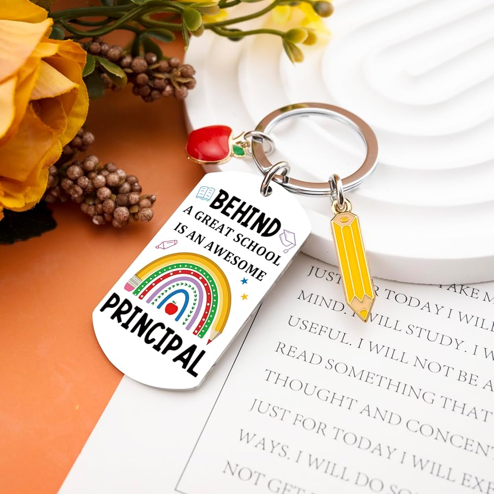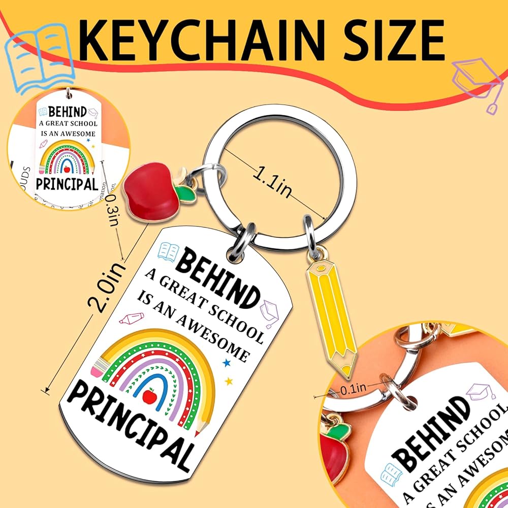 • Principal Appreciation Gifts/Principal Christmas Gifts: The colorful keychain honors the inspiring leadership behind every great school. It's a thoughtful and uplifting principal appreciation gift. Show how much you appreciate the dedication and care of your school's principal with this sentimental keychain—a daily reminder of their impact.