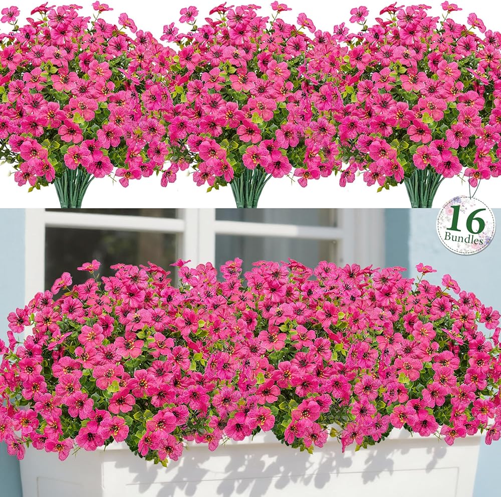• تشتمل العبوة على: الزهور الاصطناعية للاستخدام في الهواء الطلق تتضمن 16 حزمة من الزهور المزيفة، وهي كافية لاحتياجات الديكور، والنباتات الصناعية الخارجية ذات ألوان زاهية ومناسبة جدًا كديكور للحديقة والمنزل