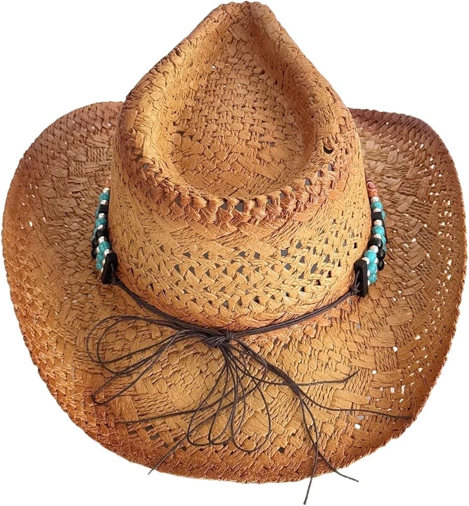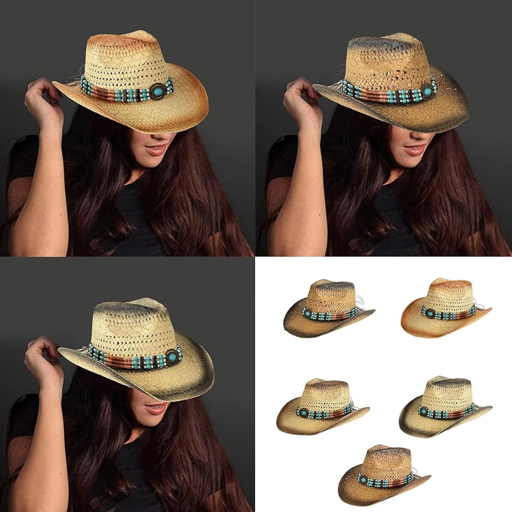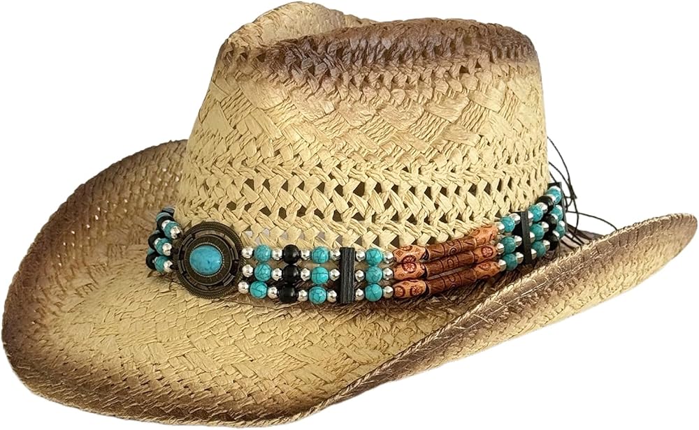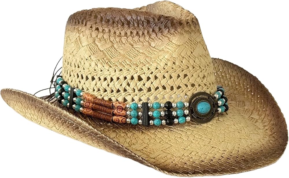 Unisex Straw Hat Elegant Beaded Decorative Bands Hat Outdoor Beach Hat for Beach Outings