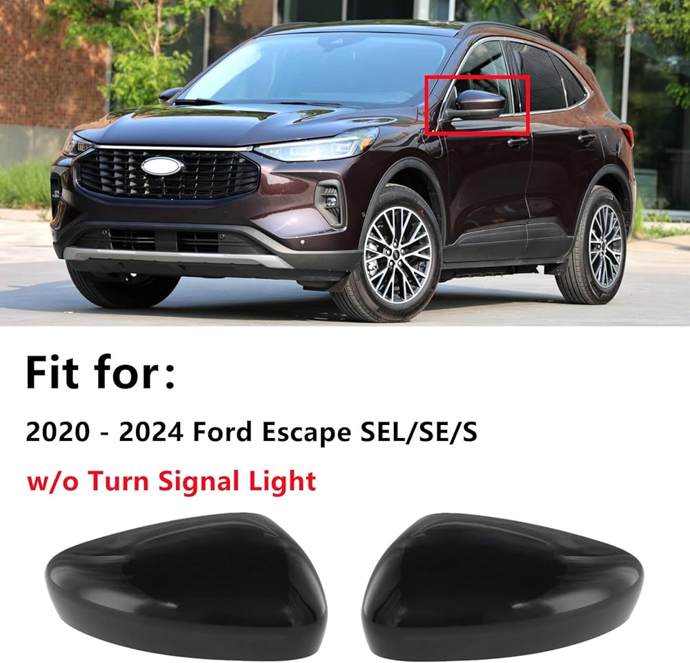 DULPER Rear View Mirror Cover Compatible with 2020-2024 Ford Escape SE / SEL 20 21 22 23 24 w/o Turn Signal Light Mirror Caps Replacement Left and Right