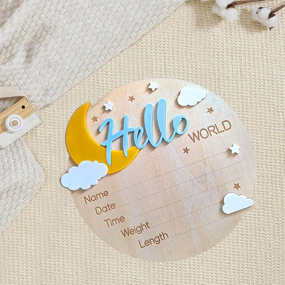 Personalized Newborn Announcement Sign:Customize with your baby's name, birth date, weight, and height to create a special keepsake.fit for hospital door hangers, nursery decor, or birth announcement photos.Made from high quality wood with a smooth finish.