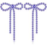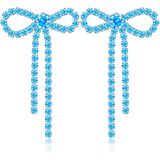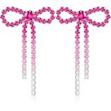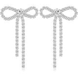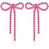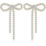 GPASTG Dainty Long Tassel Sparkly Crystal Bow Knot Dangle Drop Earring Lightweight Shiny Rhinestone Stud Earring for Women