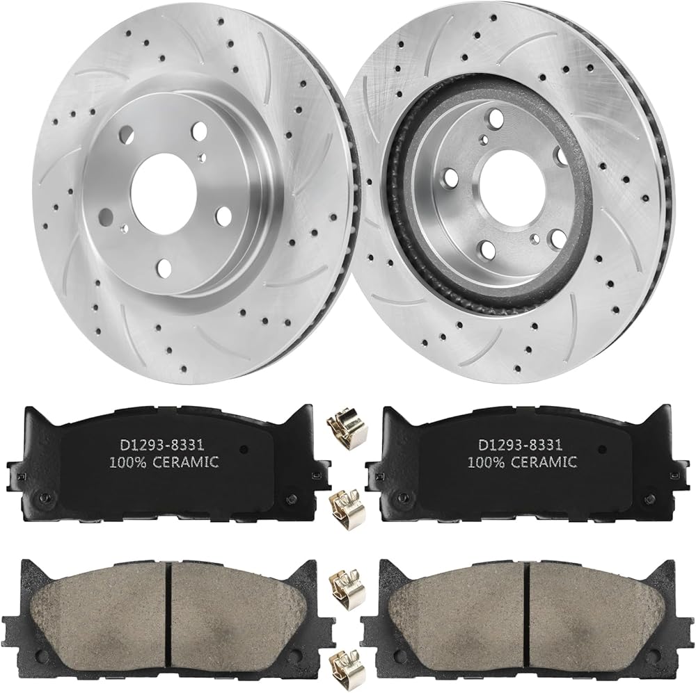11.06" inch Drilled Slotted Rear Brake Rotors+ Ceramic Pads Kit Replacement for LEXUS ES300H 2013-2018 All Models.
