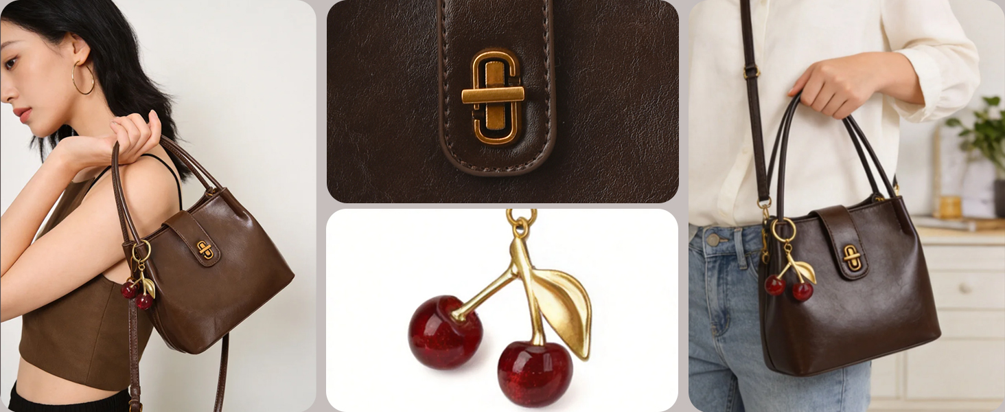 Cherry Keychain Vegan Leather Tote Bag — A stylish and practical gift set for women, perfectly suited for work, travel and special occasions.