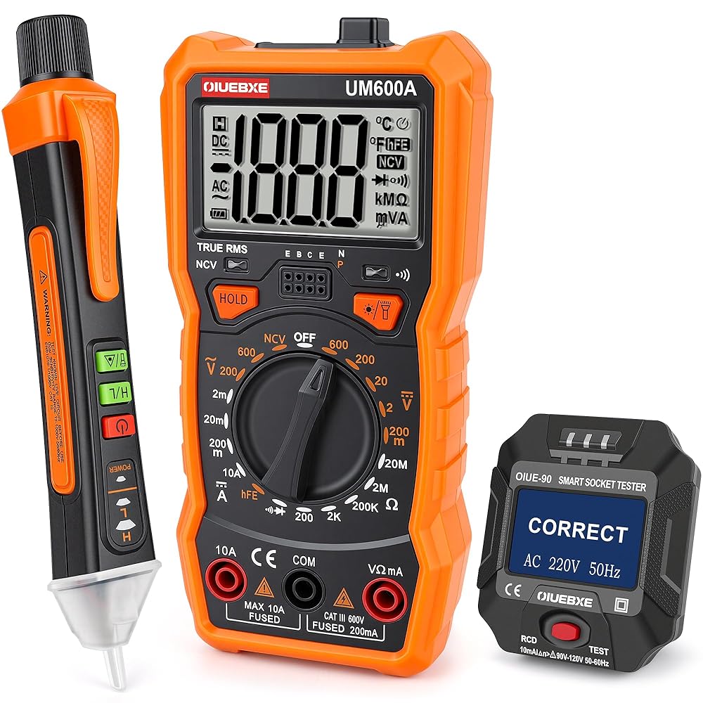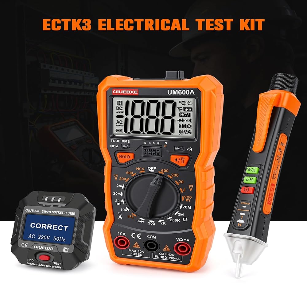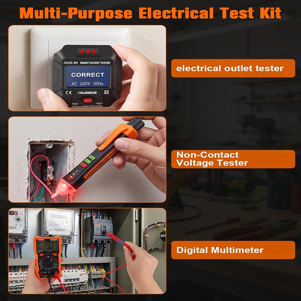 3 Essential Electrical Tools in One Kit – This electrical testing bundle combines a Digital Multimeter, Non-Contact Voltage Tester, and Outlet Tester in one convenient set. Perfect for troubleshooting electrical systems at home or on the job site.