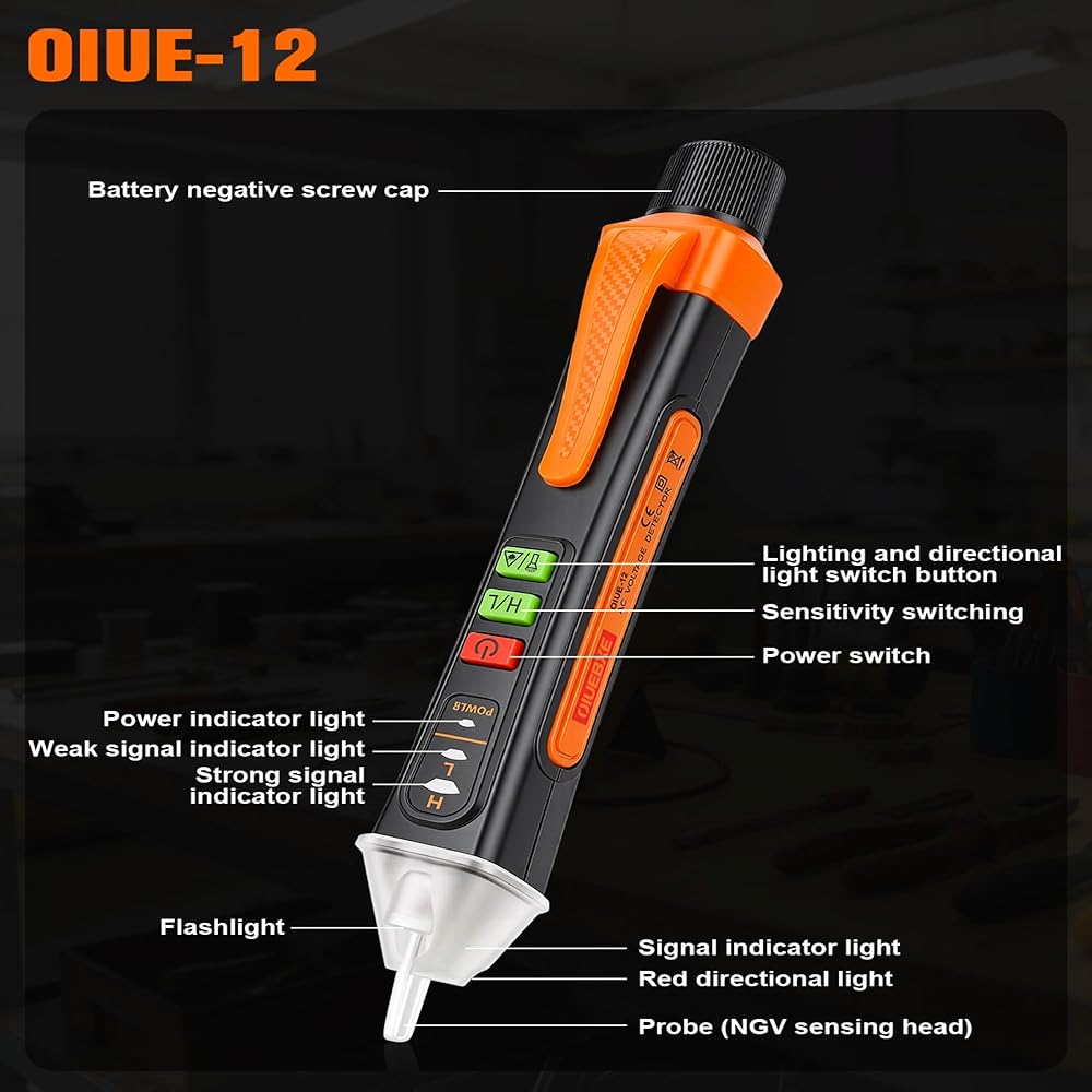 Safe Non-Contact Voltage Detection – Detect AC voltage from 12V to 1000V without direct contact. Visual LED and audible alerts instantly indicate live wires. Includes built-in flashlight and auto shut-off for added convenience.