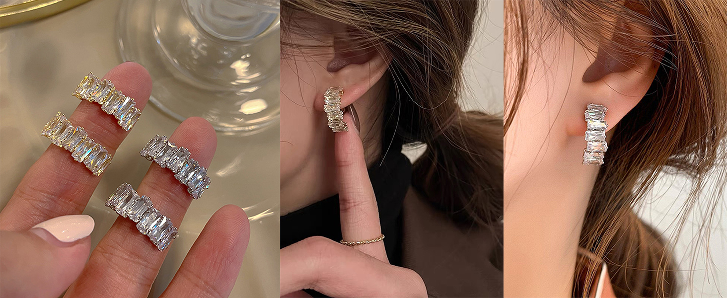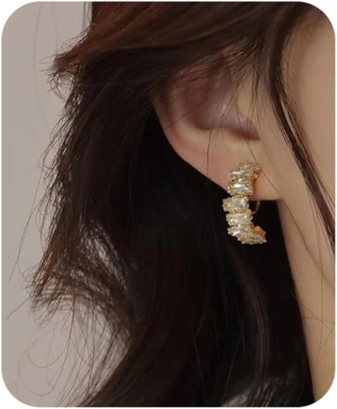 • Sparkling Crystal Rhinestone Half Hoop Earrings:Adorned with dazzling crystals and dense rhinestones, catches light effortlessly for eye-catching shine, perfect for upgrading daily or party looks.