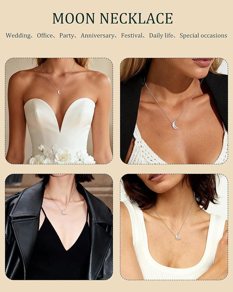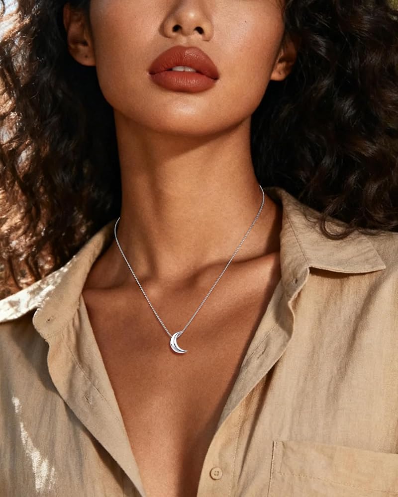 تصميم أنيق: تتميز قلادة القمر هذه بقلادة هلالية منحنية بشكل أنيق، مستوحاة من القوس الناعم لقمر جديد في سماء الليل. شكلها البسيط والرمزي يخلق قلادة أنيقة تتماشى بسهولة مع أي نمط