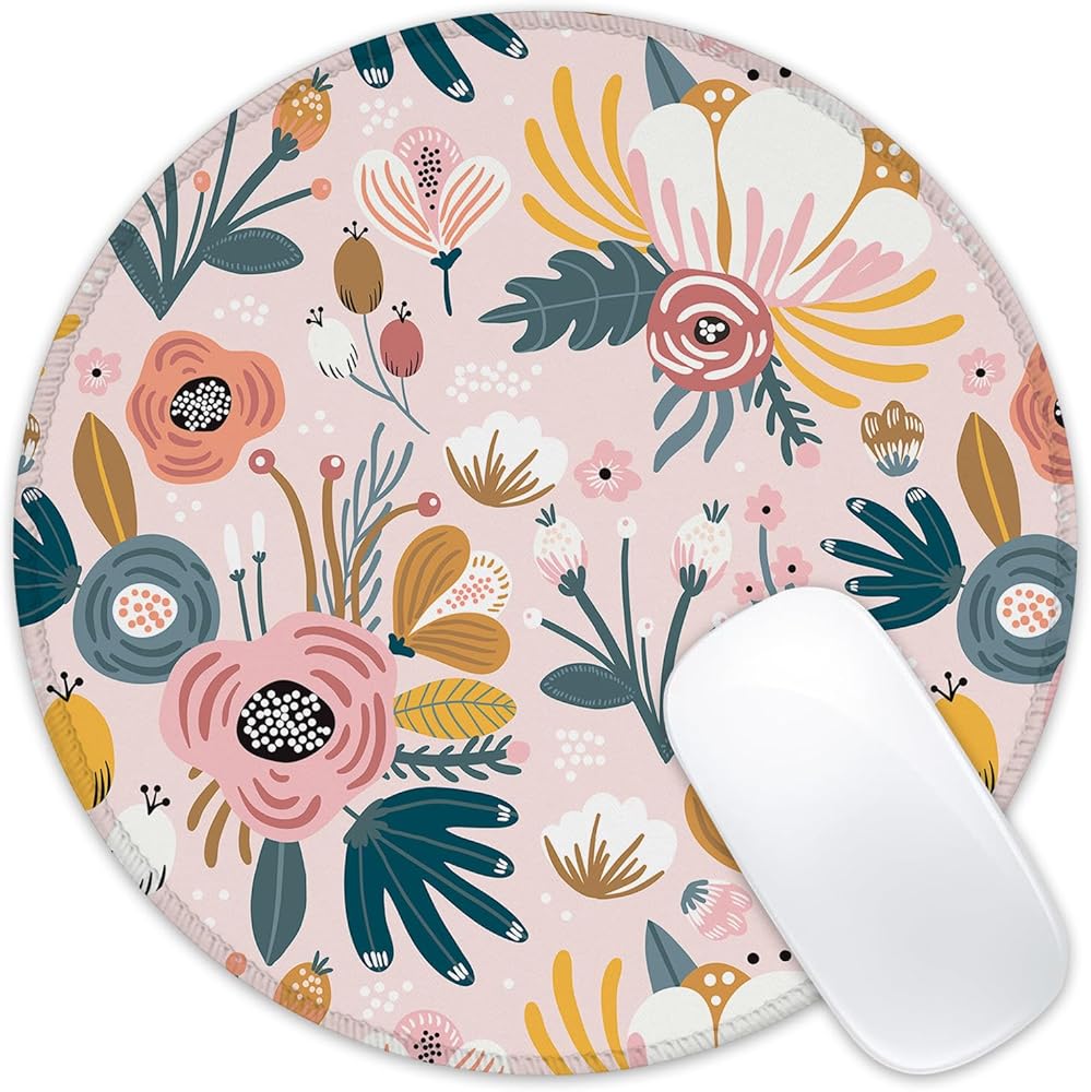 Mouse Pad Size: This Creative Flowers Round Mouse Pad compatible with wired, wireless, mechanical, laser, and optical mice. Sized at 8*8 inches. Portable and worry-free about warping when rolled up for storage