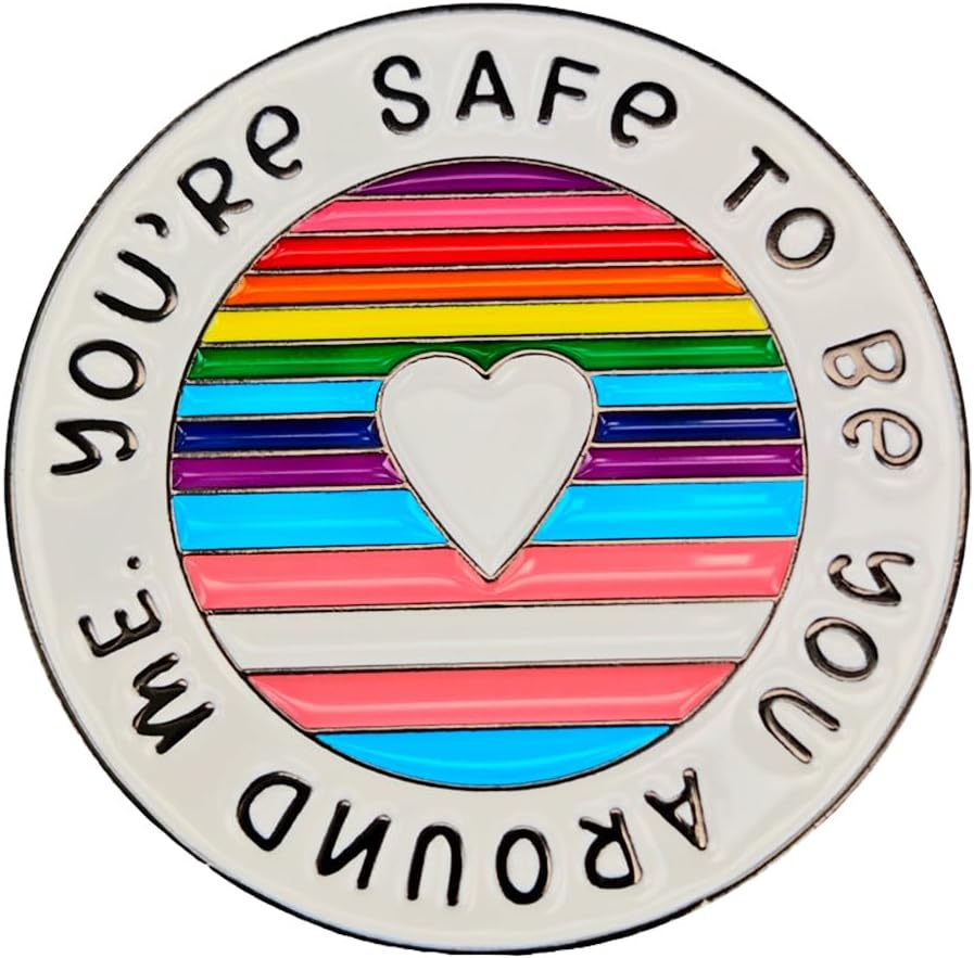 دبوس المينا، أنت آمن لتكون أنت حولي، دبوس طية صدر السترة، هدية لشركاء عشاق المراهقين من LGBT، شارة زر على شكل قلب قوس قزح، هدية لشركاء عشاق المراهقين من LGBT، ديكور DIY، دبوس على حقيبة قماش القميص
