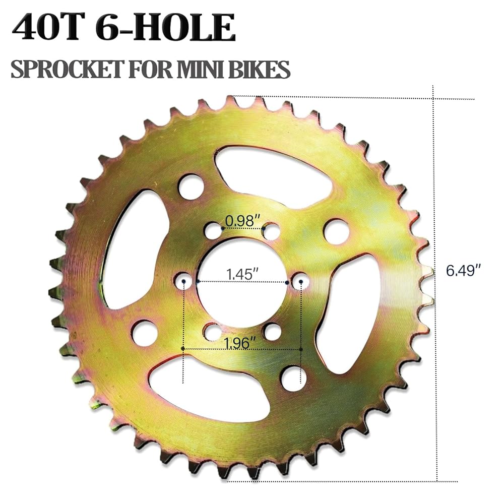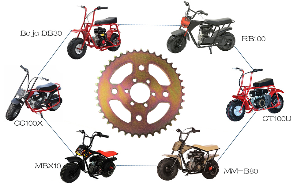 التوافق العالمي للدراجة الصغيرة: 40T 420 سلسلة خلفية سلسلة 6 فتحات لـ Coleman CT100U CC100X RB100 B100 لـ Baja Doodle Bug DB30 لـ Monster Mega Moto MMB80/105cc لدراجة Motovox MBX10 الصغيرة.