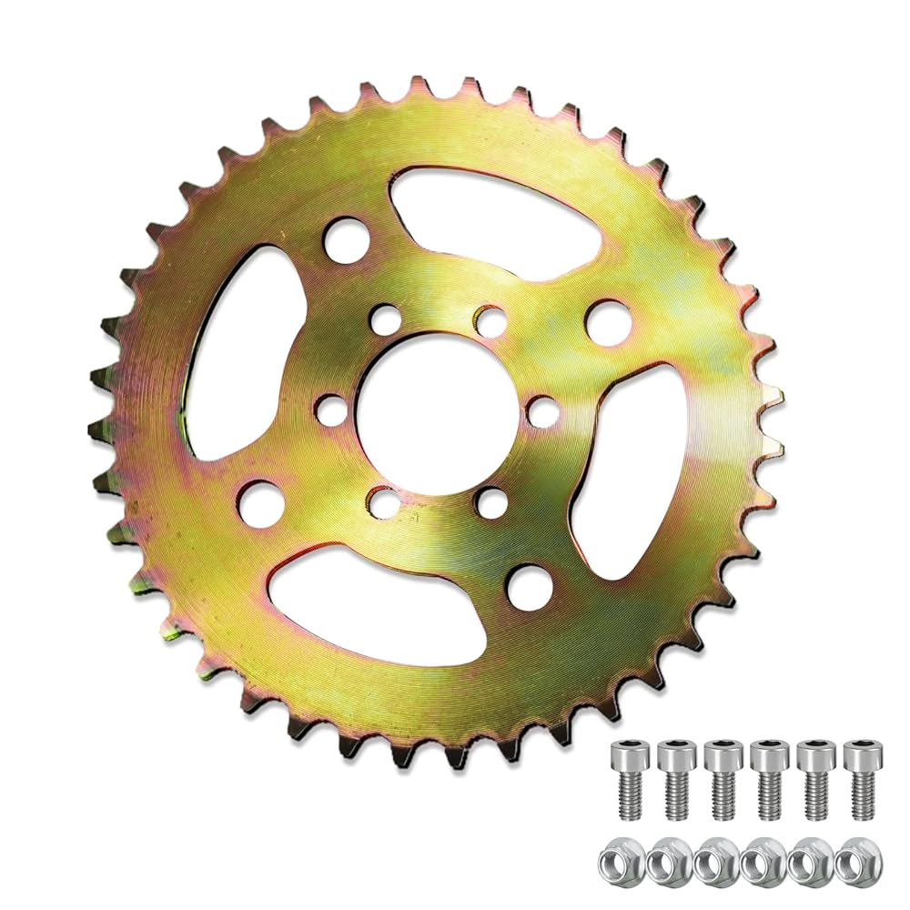 تركيب سهل بمسمار: استبدال مباشر لعجلة السلسلة 40 سنًا 420 التي تم ارتداؤها دون الحاجة إلى تعديلات. التصميم العالمي ذو 6 فتحات يناسب معظم العجلات الخلفية للدراجات الصغيرة، مما يعيدك إلى الطريق أو المسار في دقائق. مصممة لعشاق سباقات الدراجات الصغيرة.