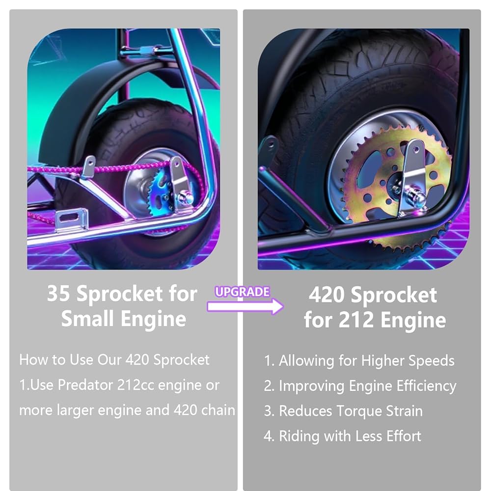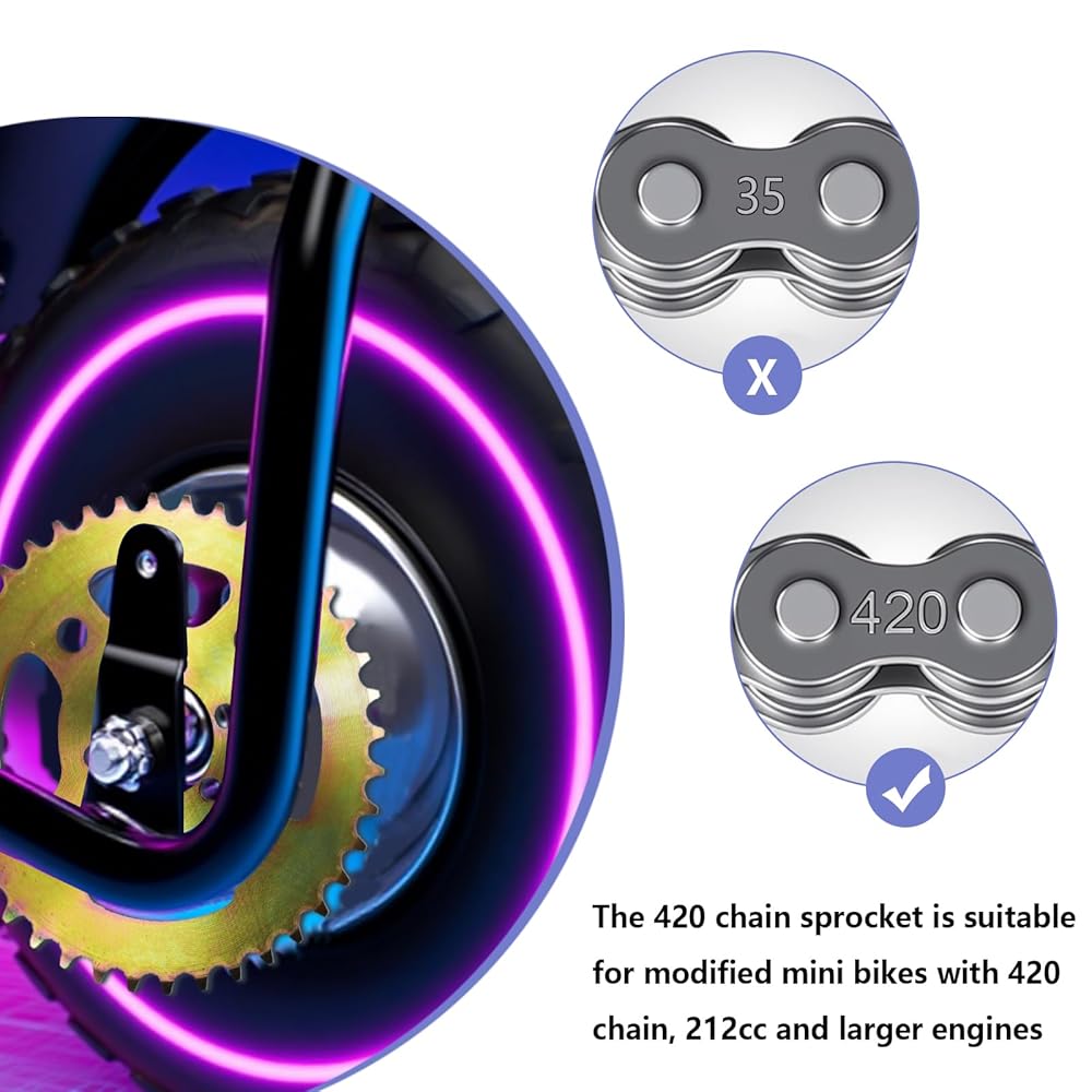 Enhanced Riding Efficiency: Reduces torque strain on your mini bike's torque strain while improving overall engine efficiency. يقلل المظهر الجانبي الأمثل للأسنان من تآكل السلسلة من أجل تشغيل أكثر سلاسة وإطالة عمر المكونات.