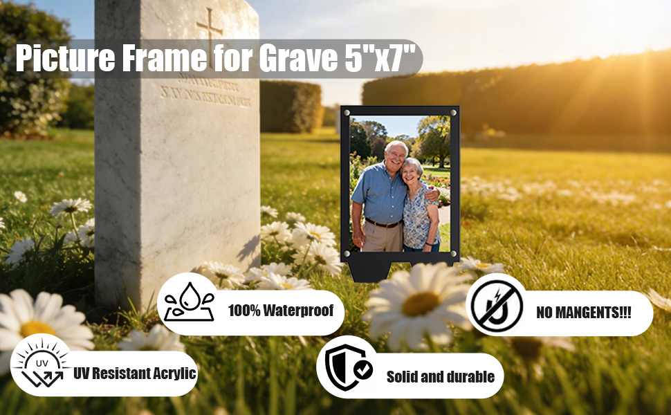[إطار صورة مقاوم للماء للقبر]: إطار الصورة المقاوم للماء في الهواء الطلق يحمل صورة مقاس 5 × 7 مصنوعة من الأكريليك الشفاف عالي الجودة، ويتميز بهيكل سميك للغاية مقاس 12/25 بوصة لمتانة دائمة. إنه بمثابة تحية كريمة في المقابر، وطريقة ذات مغزى لتكريم أحبائك في المناسبات الخاصة، وهدية تذكارية مدروسة لمن هم في حداد.