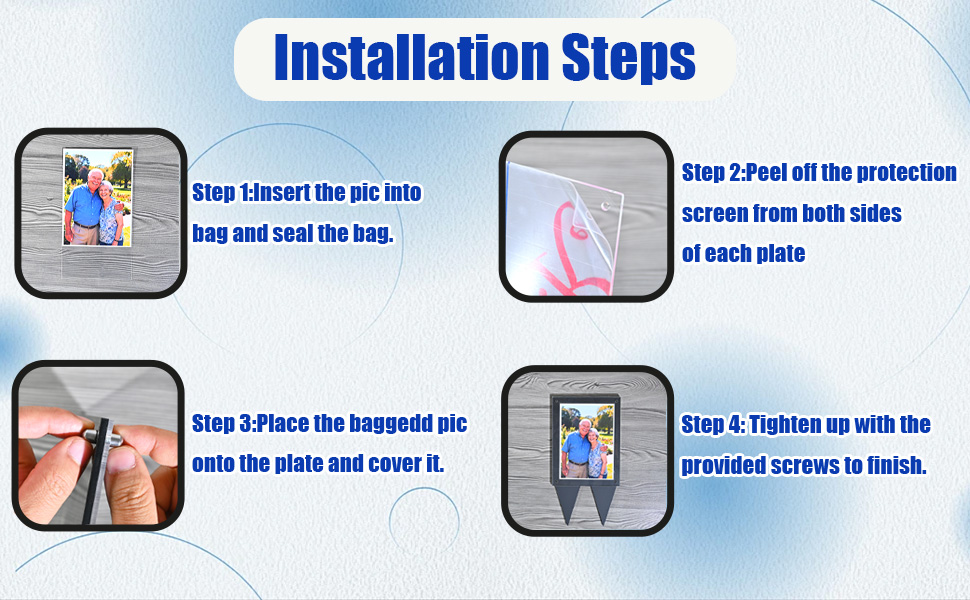 [المناسبات]: هذا الإطار التذكاري المقاوم للطقس لا يزين فقط مكان الراحة في المقبرة، بل يعمل أيضًا بمثابة تذكار من القلب لأولئك الذين يحزنون أحبابهم، مما يوفر طريقة لطيفة للتعبير عن أعمق تعاطفك وذكرك المشترك.