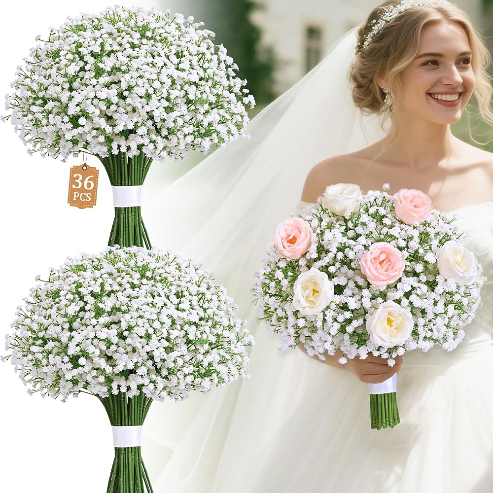 • 【Romantic Wedding Decor】Symbolizing pure and everlasting love, our babys breath artificial flowers add a romantic touch to bridal bouquets, centerpieces, arches, and aisle decorations. Create a dreamy wedding atmosphere with flowers.