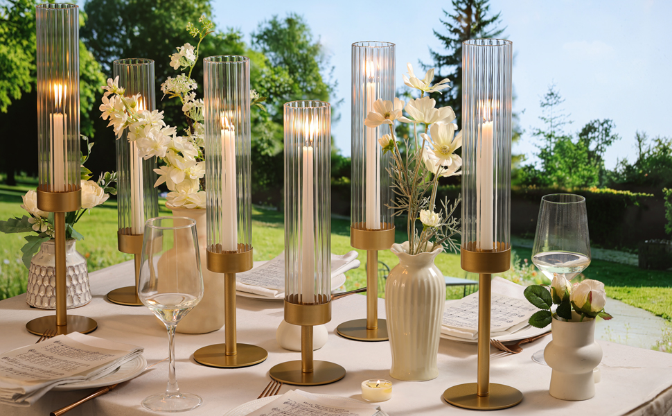 【WISE SOLUTION FOR OPEN FLAME】These taper candle holders have an open-ended design that allows for easy access and maintenance of candles. The 11'' long chimney cover ensures your candles are fully covered, which can provide good protection for open-flame candles. If your wedding venue or other occasions do not allow open flame devices, our hurricane candle holders are the perfect addition to your event.