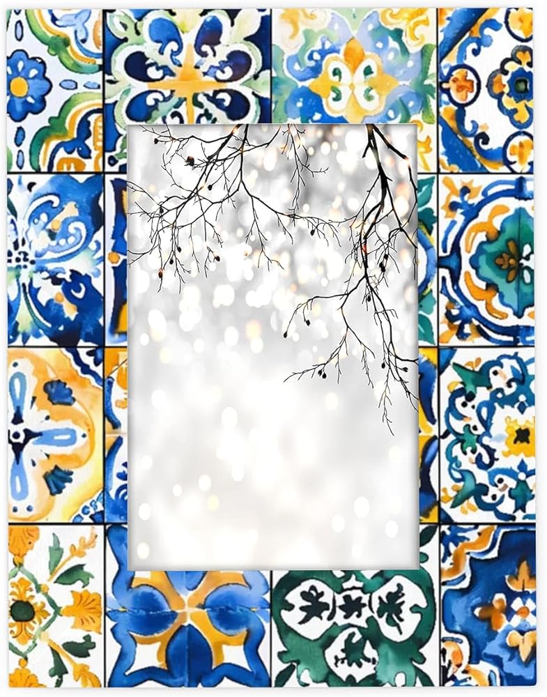 إطار صورة بنمط البلاط المكسيكي العرقي مقاس 5 × 7، وعرض الصور مقاس 4.6 × 6.6 بدون حصيرة، وإطارات صور أنيقة لتزيين جدار معرض المنزل in Kuwait