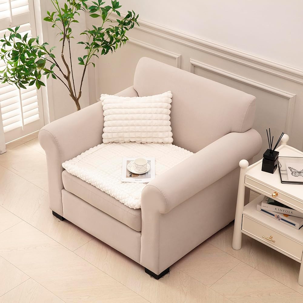 غطاء مقعد محبب مبطن غير قابل للانزلاق، واقي أريكة من الفلانيل للحيوانات الأليفة، غطاء أريكة قابل للغسل في الغسالة، مقاس 24/47/54/67/78 بوصة (أبيض، كرسي استرخاء 24 بوصة × 24 بوصة)