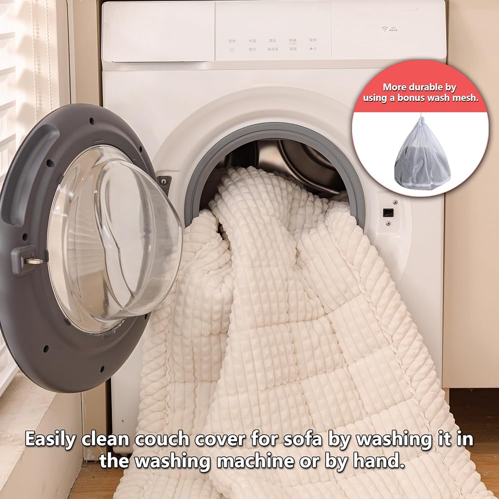 • Easy Installation & Machine Washable Care: Enjoy unparalleled convenience. Our couch covers are designed for a hassle-free setup – simply unfold and drape them over your sofa; no tools or accessories are needed. When it's time for cleaning, these couch protector are effortlessly machine washable. For best results, we recommend a cold water gentle cycle with mild detergent and tumble drying on low heat. Please avoid using bleach to maintain the fabric's quality and colour.