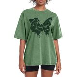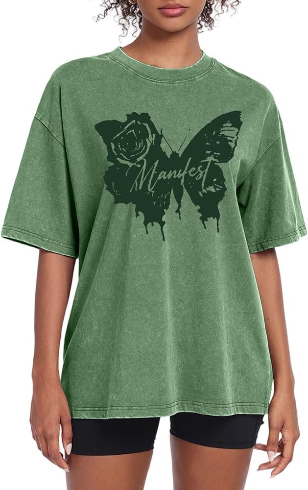 تي شيرت نسائي كبير الحجم من QLIPIN - تي شيرت فضفاض بطبعة فراشة، تي شيرت قطني بأكمام قصيرة in Kuwait