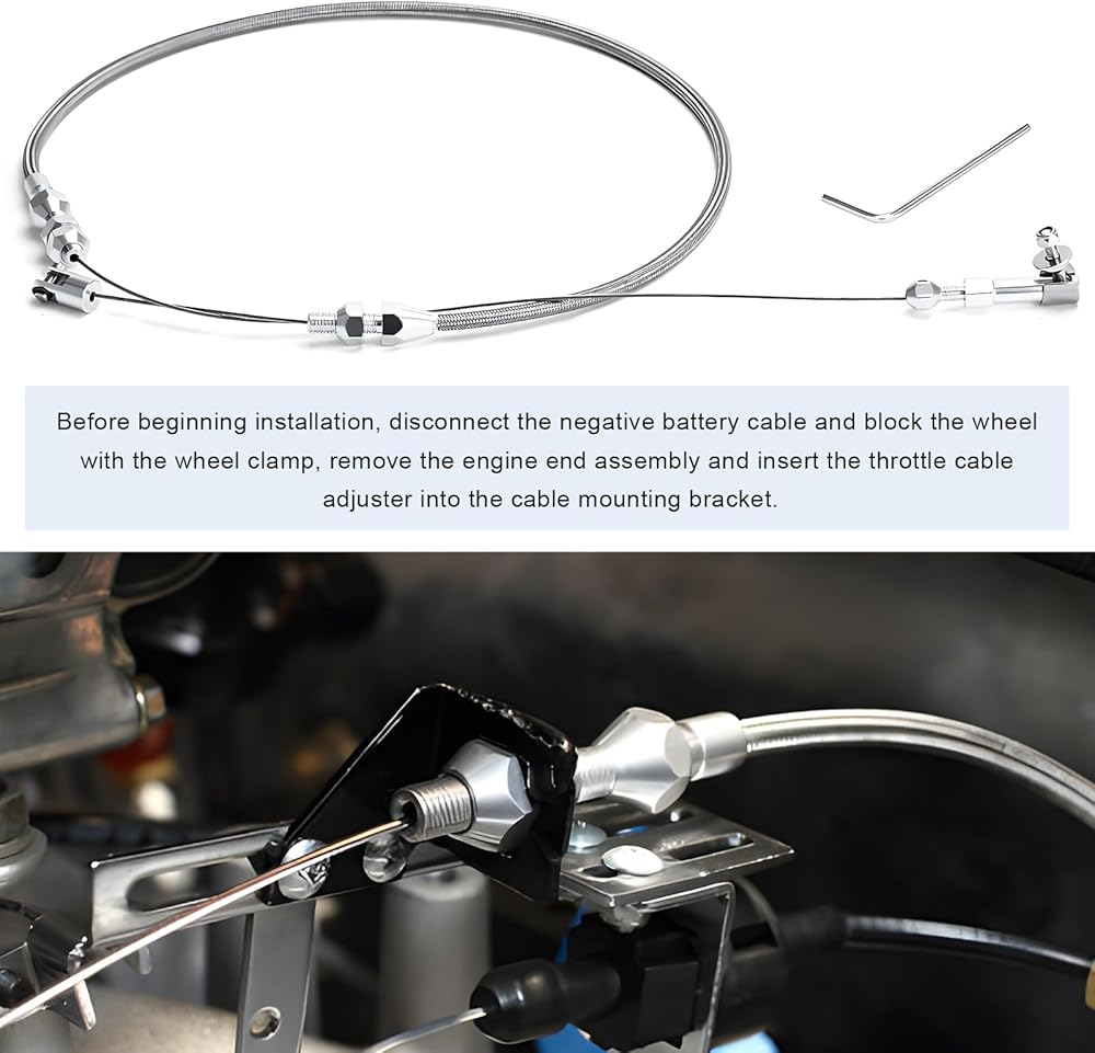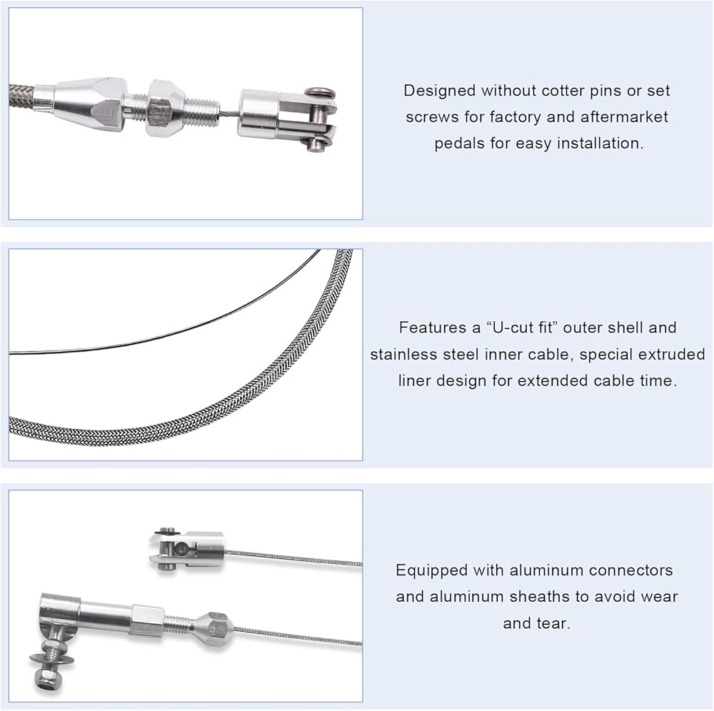 Easy Installation: The installation of this cable is simple. First, connect one end of the cable to the fixed point of the accelerator pedal and make sure it is locked. Next, connect the other end to the arm. Finally, adjust the nut with a wrench to ensure the tension of the wire drawing