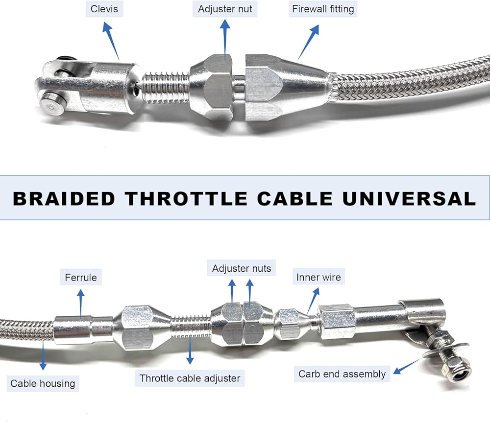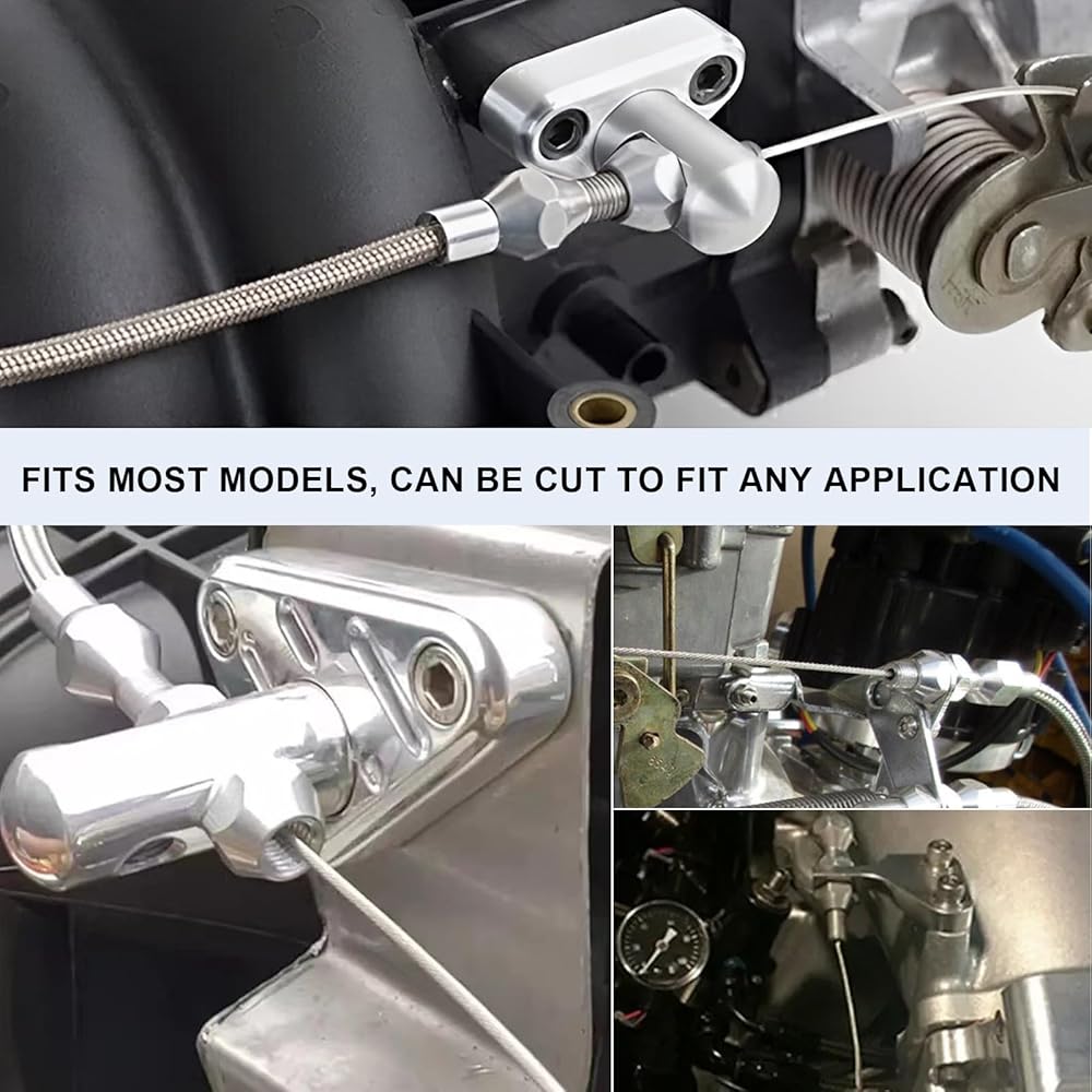 مجموعة كابلات خانق مضفرة من الفولاذ المقاوم للصدأ مقاس 24 بوصة، كابلات تسريع قابلة للتعديل مع تركيبات وطويق من الألومنيوم، استبدال كابل خانق عالمي متوافق مع معظم المركبات