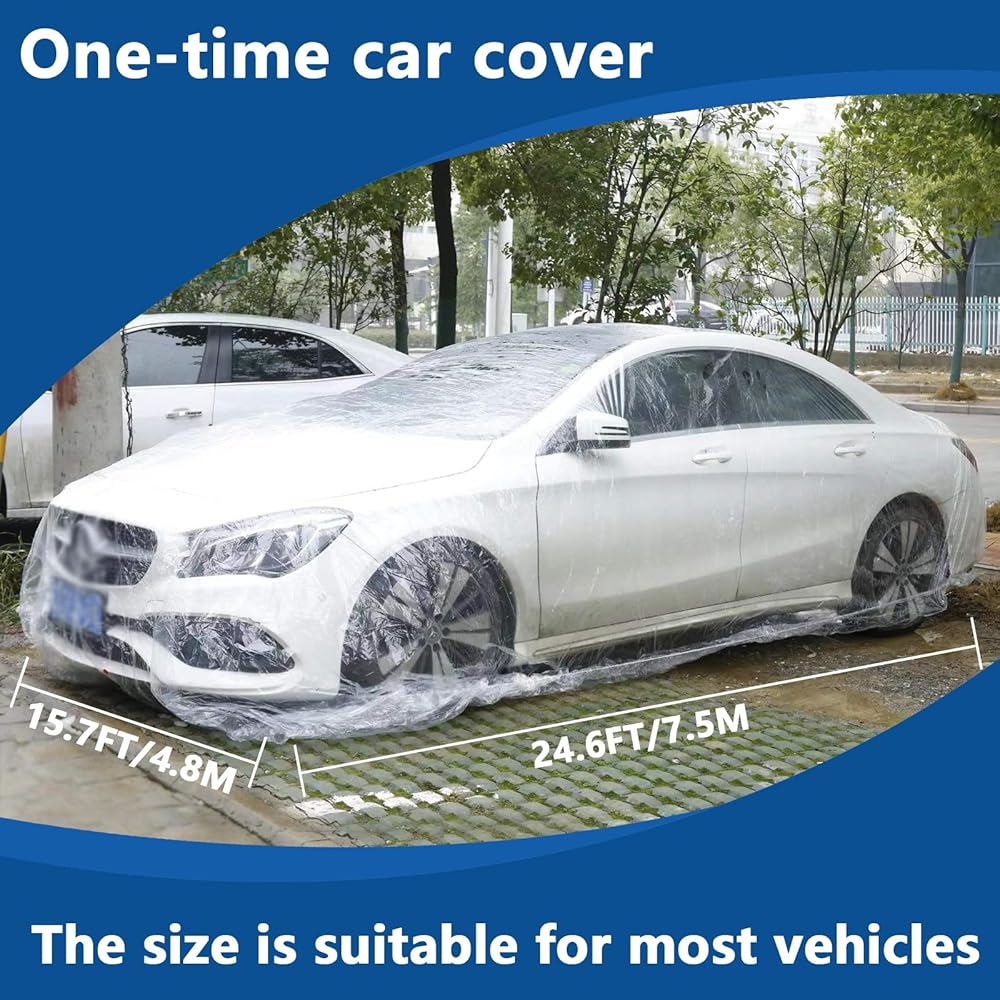 ملاءمة عالمية لمعظم المركبات: بديل لحماية السيارة القياسية، يوفر غطاء السيارة البلاستيكي هذا ملاءمة عالمية لسيارات السيدان وسيارات الدفع الرباعي والمركبات التجارية متعددة المقاعد