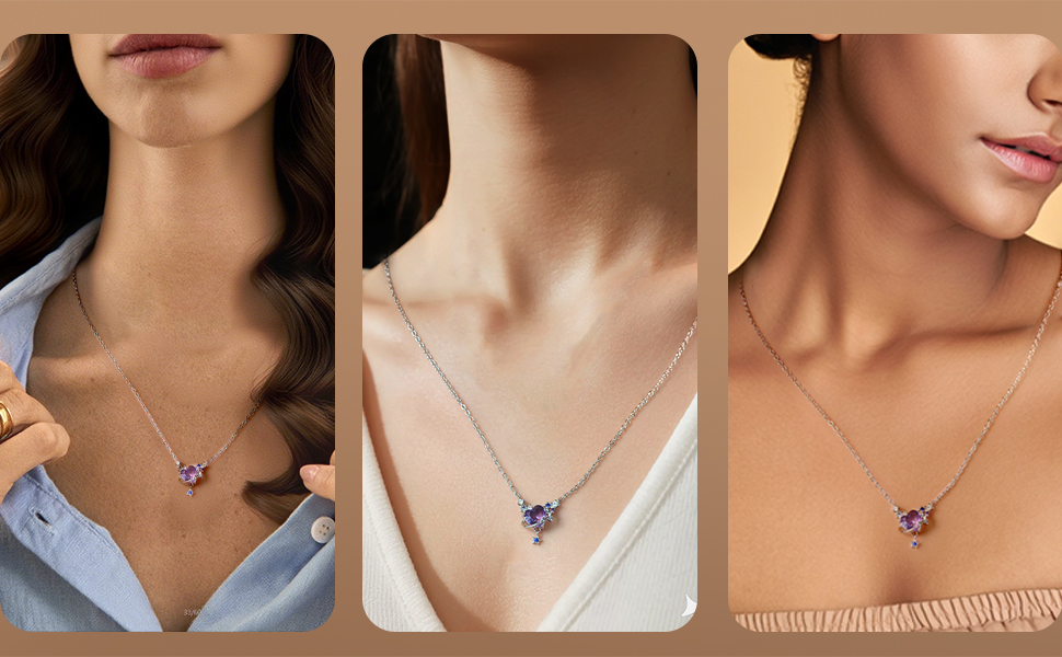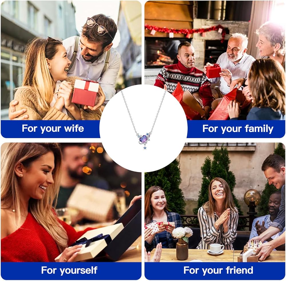 قلادة من الفضة الاسترليني 925 للنساء، قلادة قلادة على شكل كوكب الحب الأرجواني الأنيق، هدية مجوهرات النظام الشمسي المجرة لعيد الحب، سلسلة قابلة للتعديل 16-18 بوصة، ملحقات أساسية متعددة الوظائف مناسبة لمناسبات متعددة وارتداء يومي