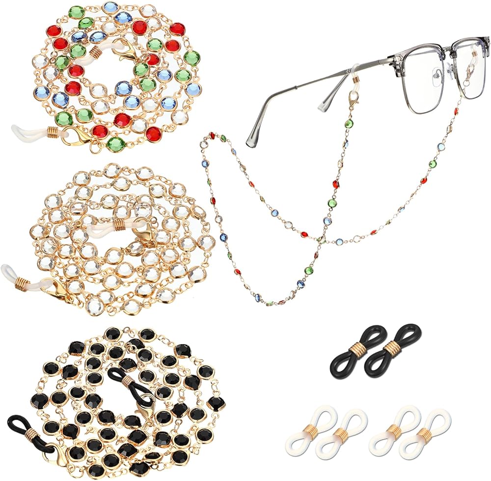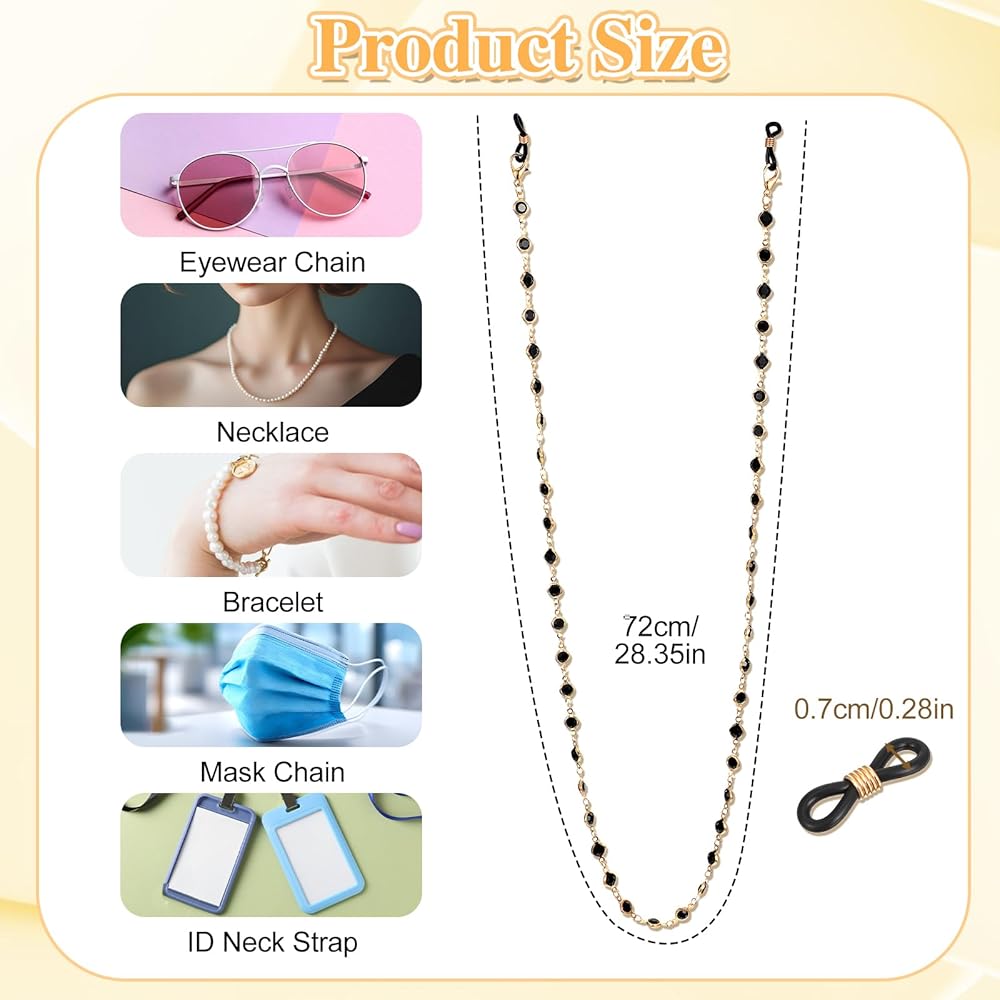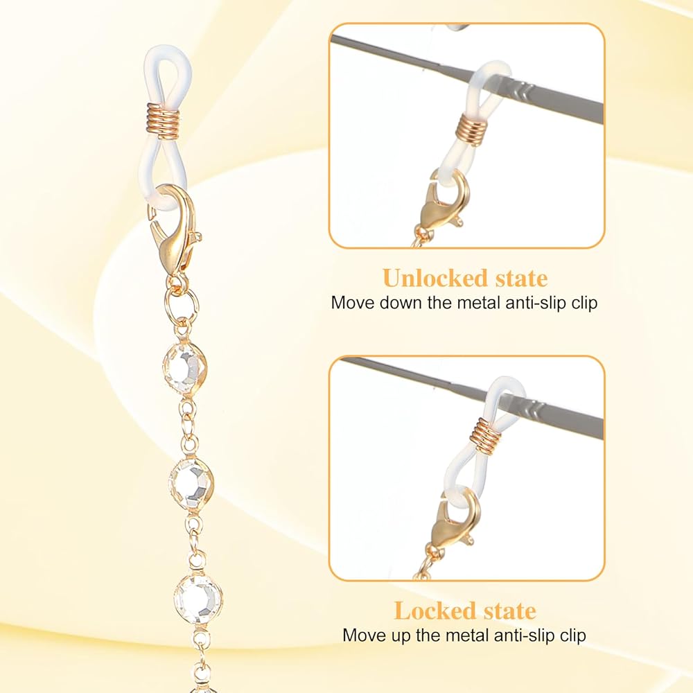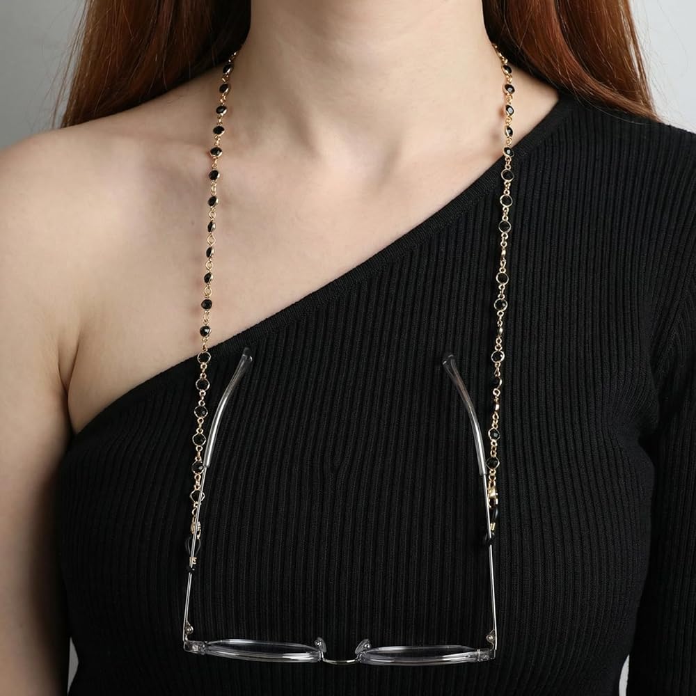 • Stylish Accessory: This elegant gold eyeglass chain, adorned with sparkling crystals, elevates your overall look. It not only secures your glasses but also adds a touch of glamour to any outfit