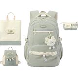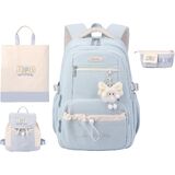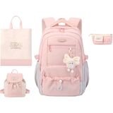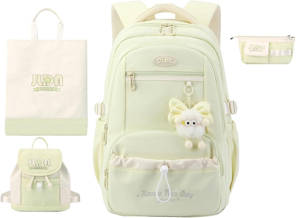 Multifunctional:4Pcs Sets,the Backpack for daily use,the tote bag for library books, PE gear, art supplies, or quick errands. The mini backpack for after‑school activities or weekend outings.Fits phone, wallet, keys, snacks, and other essentials.The zipper pouch for pens and stationery,chargers, or coins;kept inside the backpack for quick access.