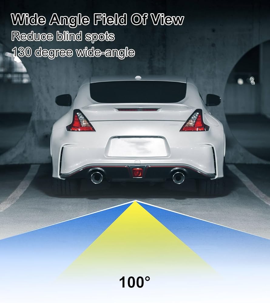 • مجال رؤية واسع للغاية: تصميم عدسة واسعة الزاوية HD 130 درجة يغطي مجال رؤية أوسع، مما يقلل بشكل فعال من النقطة العمياء عند الرجوع إلى الخلف، مما يضمن أنك تستطيع رؤية جميع العوائق والمشاة خلف السيارة بوضوح، مما يحسن بشكل كبير من سلامة العكس