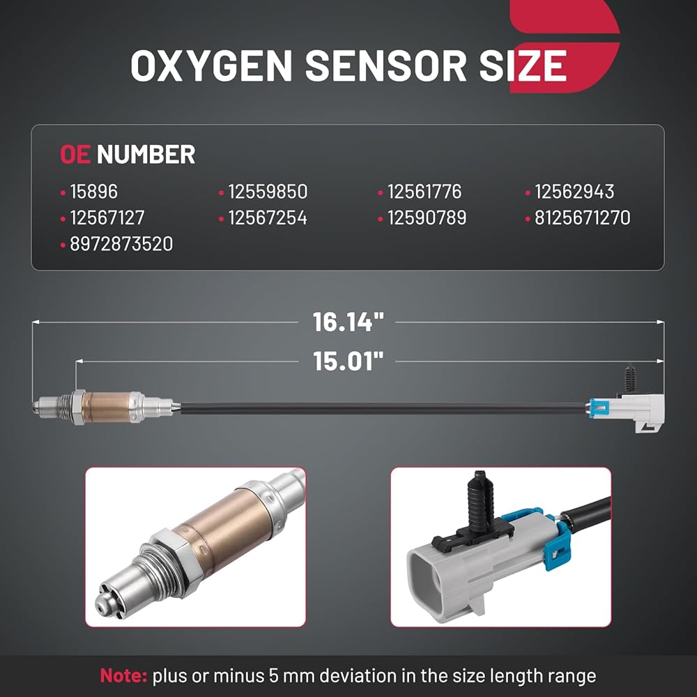 نماذج قابلة للتطبيق - مستشعر O2 متوافق مع بويك، متوافق مع كاديلاك، متوافق مع شيفروليه، متوافق مع جي إم سي، متوافق مع هوندا، متوافق مع إيسوزو، متوافق مع أولدزموبيل، متوافق مع بونتياك. يرجى استخدام أداة الإعداد أعلاه للتحقق من التوافق مع الطراز الخاص بك قبل الشراء. لمزيد من المساعدة، لا تتردد في الاتصال بنا للحصول على توصيات شخصية. يرجى ملاحظة: تحتوي كل عبوة على مستشعر واحد.