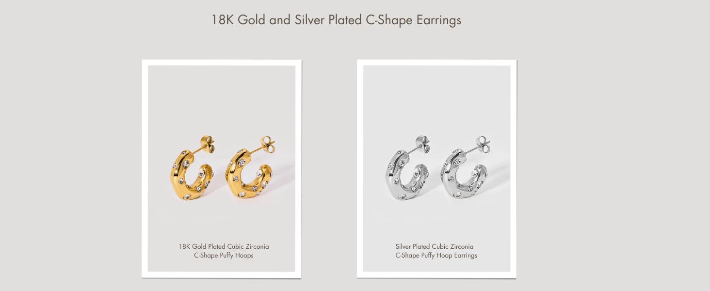 • LIGHTWEIGHT & COMFORTABLE: Made of 18K gold plated materials, the c-shaped chunky bubble hoop earrings are ideal for everyday wear, lending a retro and luxurious glow to your style. The delicate yet creative design ensures a subtle, refined look, perfect for any occasion