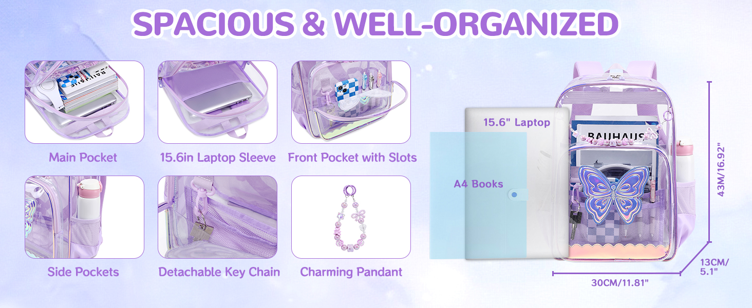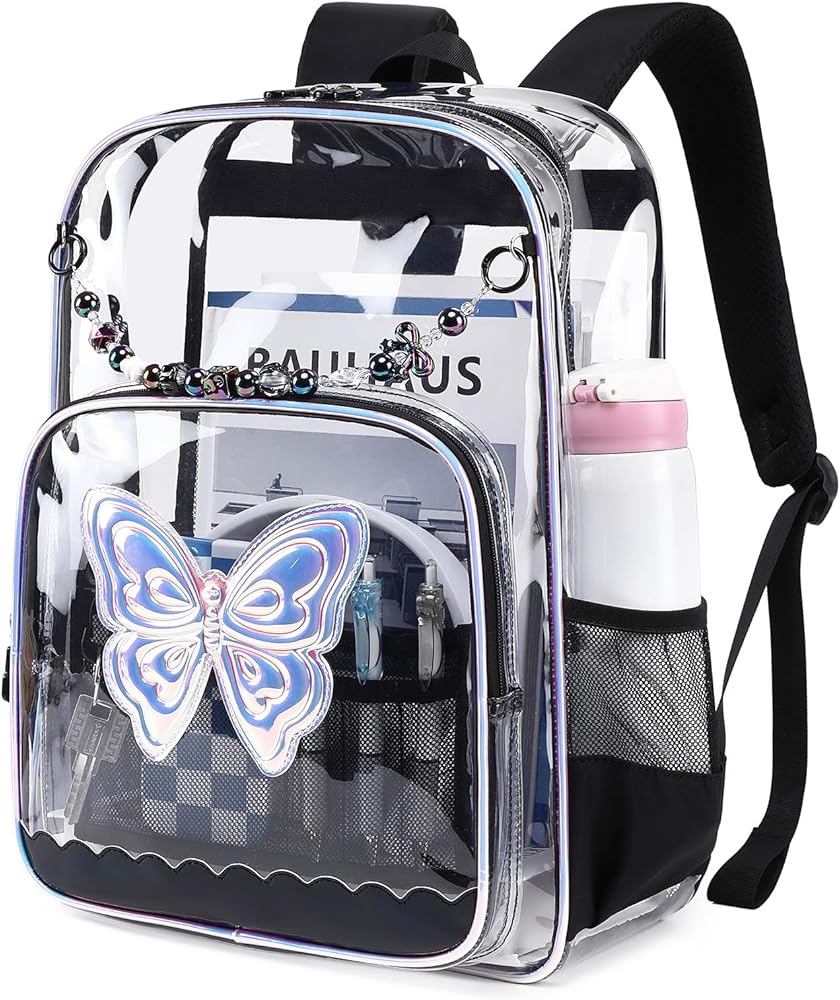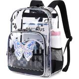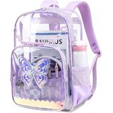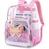 تصميم قزحي لافت للنظر: تتميز حقيبة الظهر الشفافة هذه للفتيات بفراشة مبهرة تلتقط الضوء، مع حلية مطرزة أنيقة للتألق. مثالي للفتيات فوق سن 6 سنوات