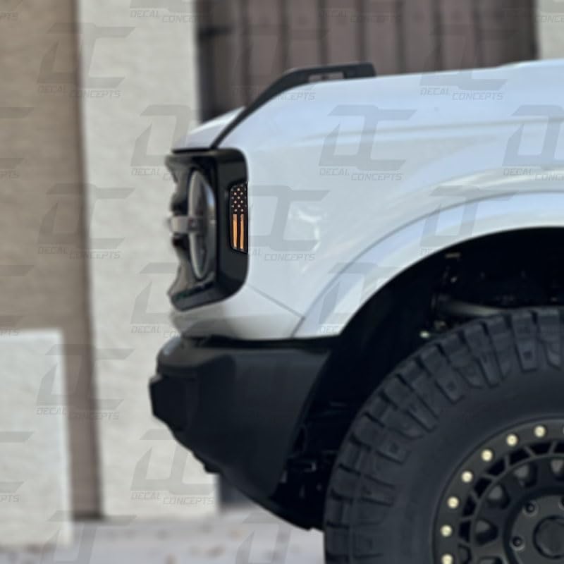 مجموعة ملصقات مميزة للعلامة الأمامية للعلم الأمريكي من شركة ديكال كونسيبتس - تناسب برونكو 2021-2025