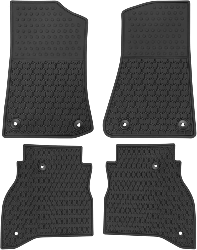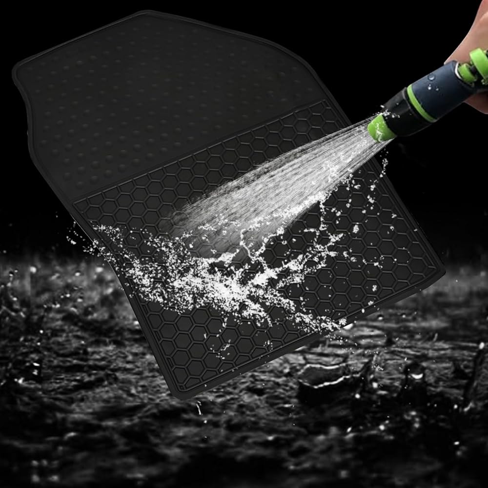 بطانات أرضية السيارة للحماية من جميع الأحوال الجوية: المنتج مصنوع من مطاط عديم الرائحة ومصمم لمنع تشوه درجة الحرارة العالية أو درجة الحرارة المنخفضة. السطح يشبه تصميم نمط الإطار، والذي يمكن أن يعزز وظيفة مقاومة الانزلاق.
