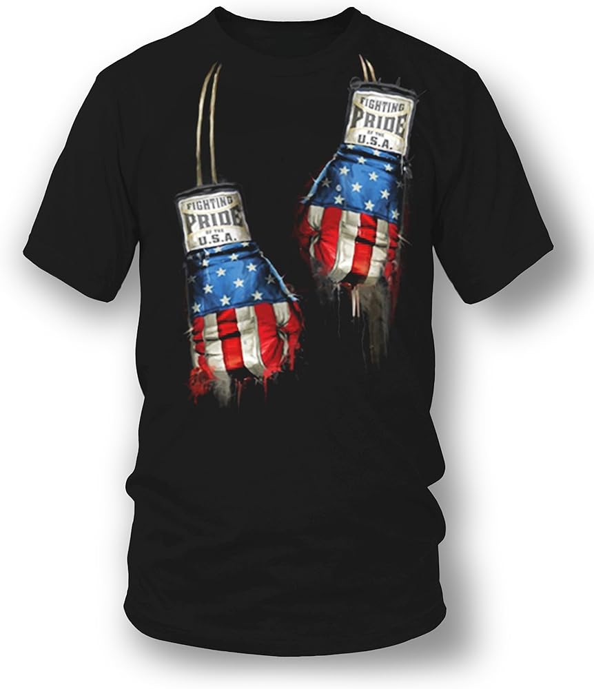 Amazingly realistic detailed screenprinting of US Boxing Gloves. Show your US boxing pride with this shirt. Screen printed on the front only on a heavy weight 6.0 oz tee. This shirt is built to last unlike other inkjet and heat transfer prints. Available in sizes Medium - 2XL.