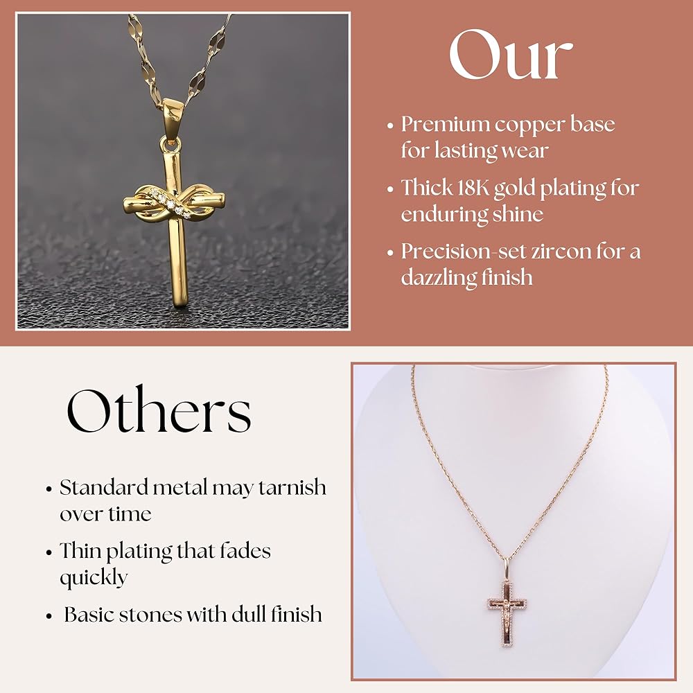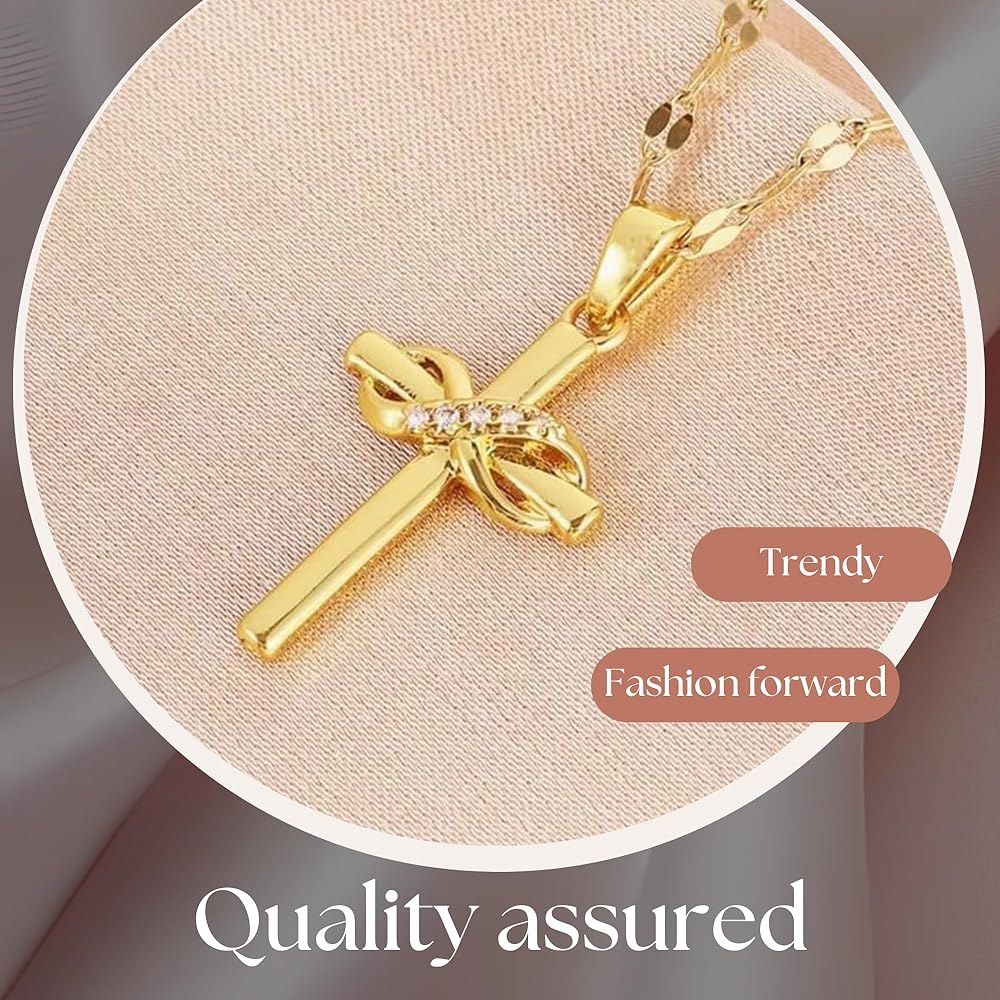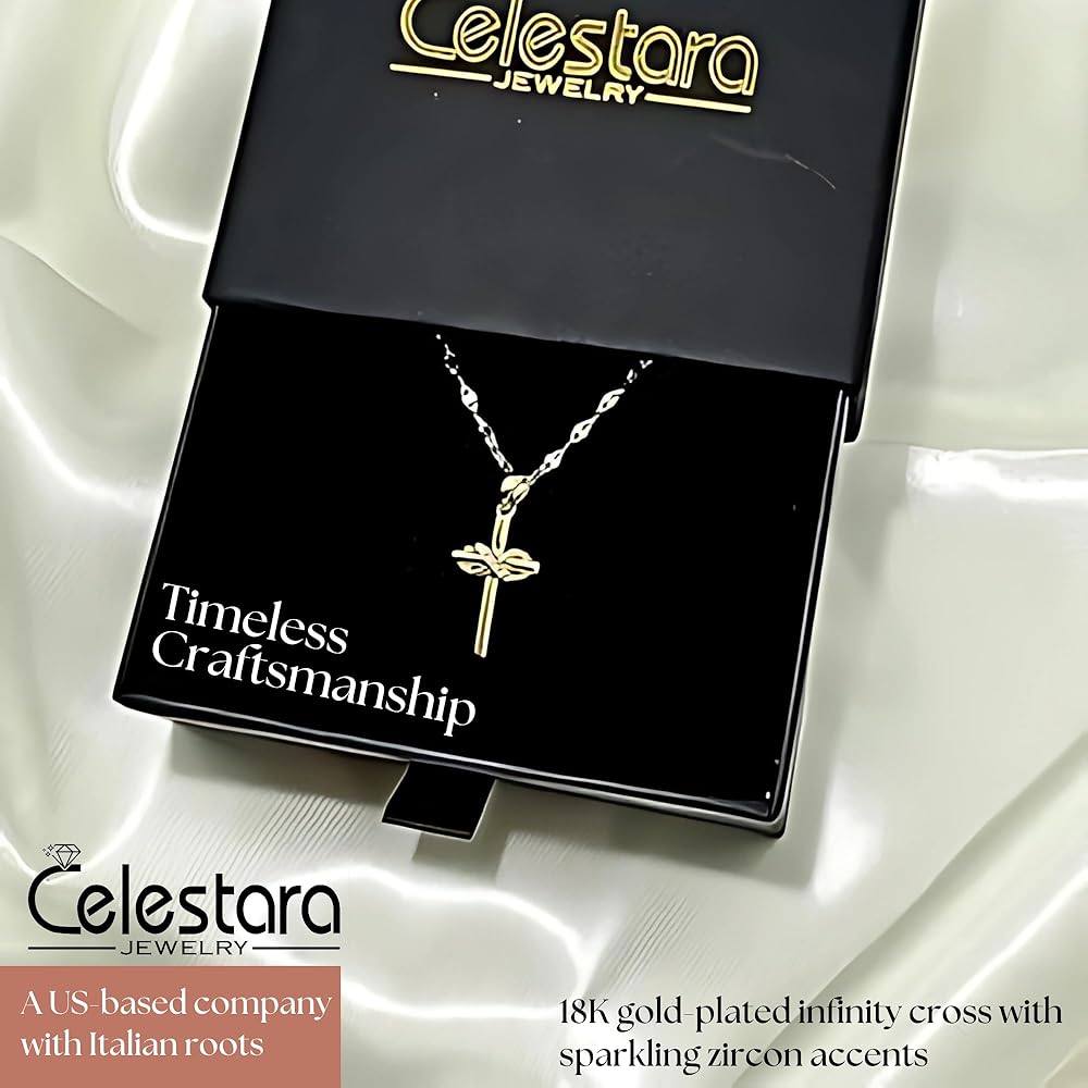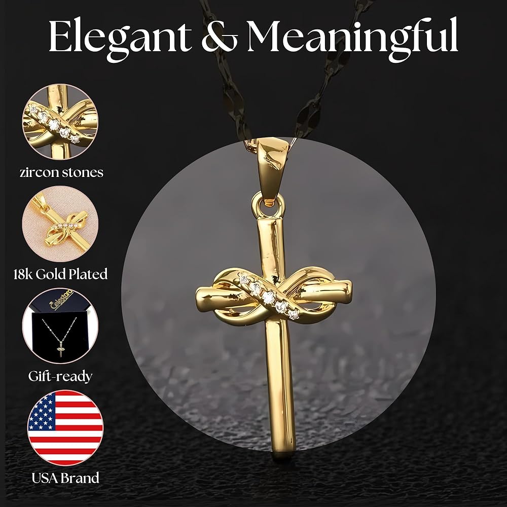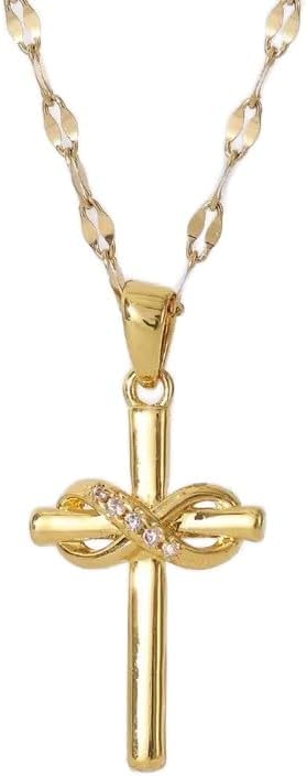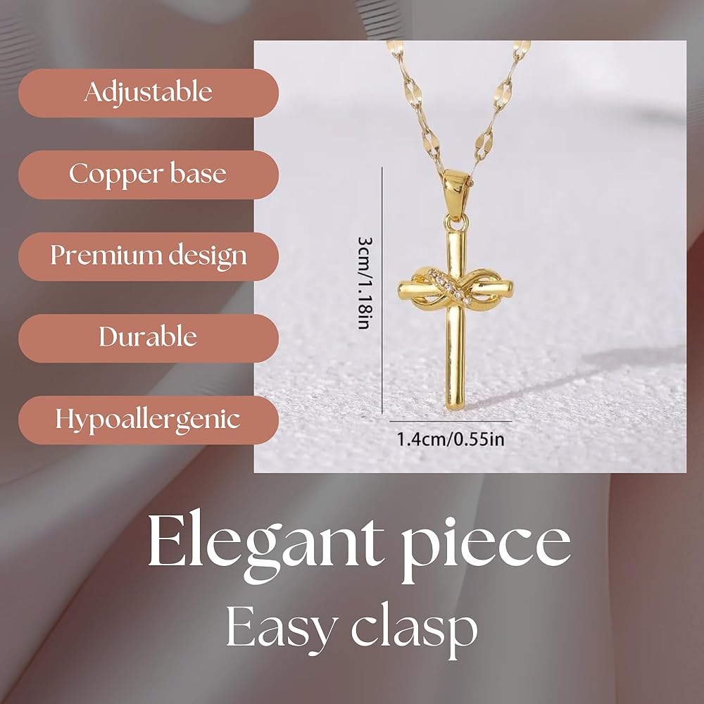 ✨تصميم متقاطع أنيق: تعرض هذه القلادة المتقاطعة الرائعة رمزًا لا نهاية له خالدًا، مصنوعة بدقة من مواد فاخرة ومطلية بالذهب اللامع عيار 18 قيراط. التفاصيل المعقدة واللمسات النهائية المصقولة تخلق قطعة مجوهرات مذهلة حقًا.