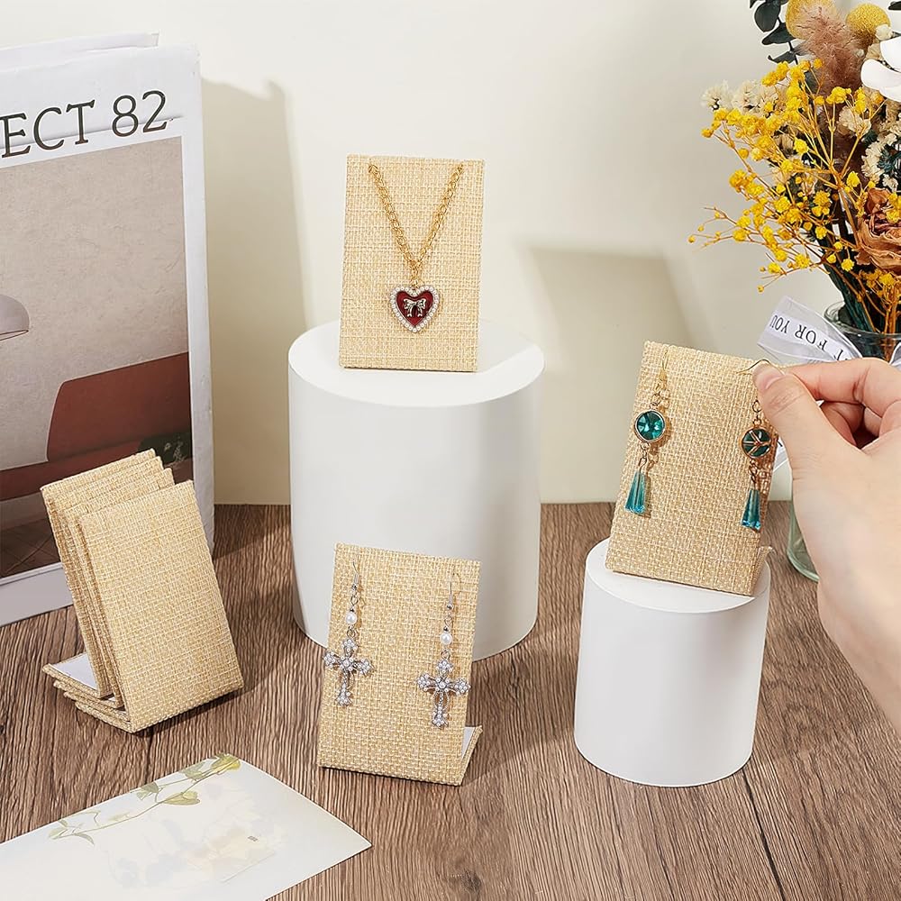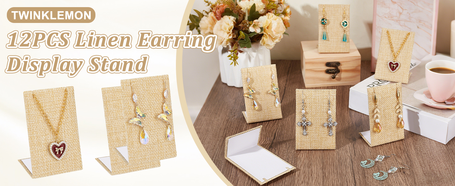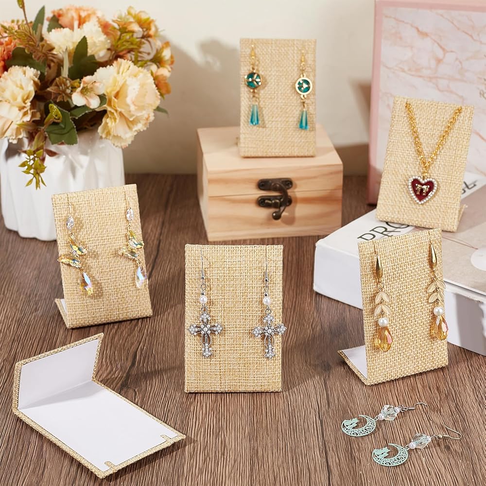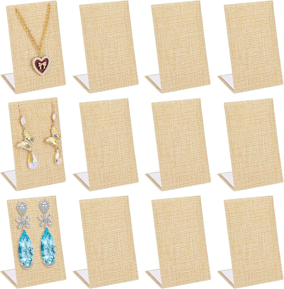 12 قطعة مجموعة عرض القرط من الكتان حامل عرض القرط على شكل حرف L منظم المجوهرات منظم الأقراط للمجوهرات المتدلية عرض الدعائم الخلفية المائلة 1.4 × 2.2 × 3 بوصة