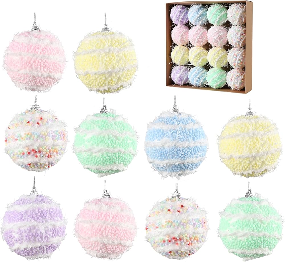 16 قطعة مجموعة زخرفة كرة شجرة عيد الميلاد الباستيل، 3.15 بوصة لون باستيل مقاوم للكسر بريق فوم عيد الميلاد المعلق كرة زينة حلوة تحت عنوان شجرة عيد الميلاد ديكور عطلة رأس السنة الجديدة