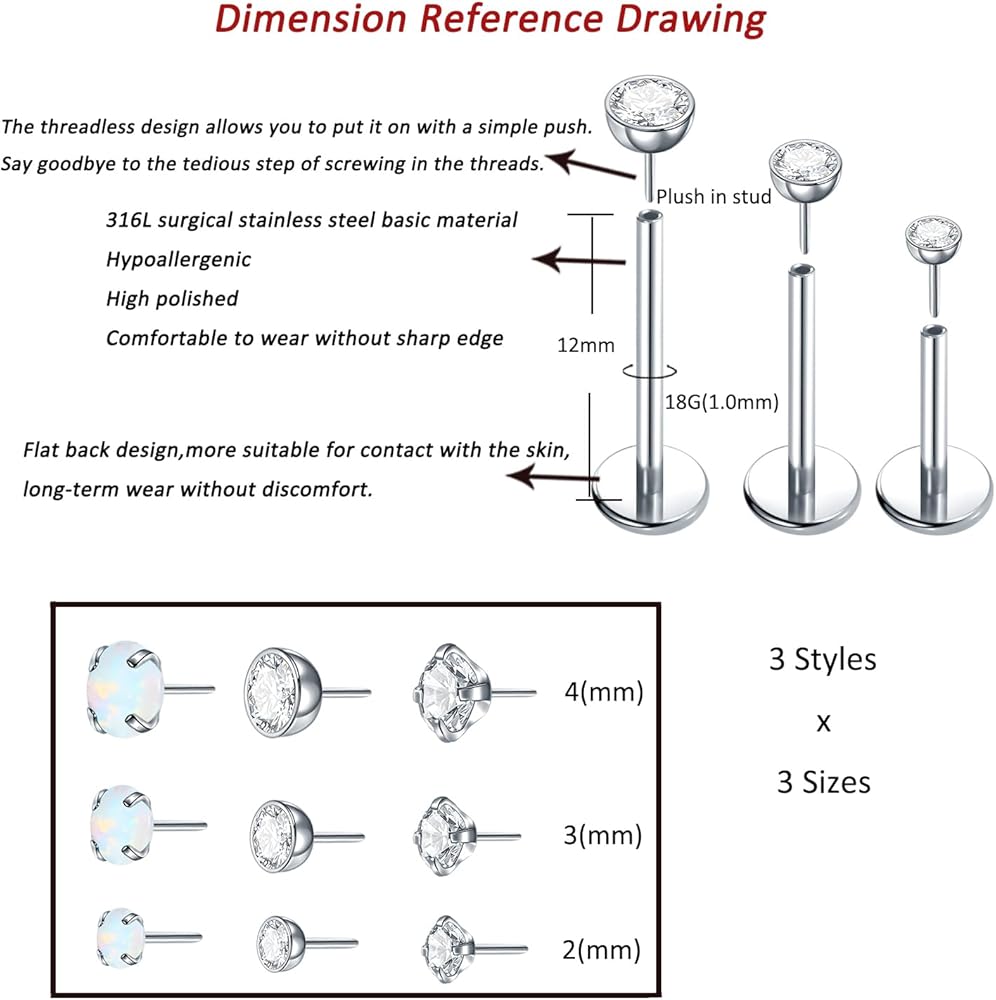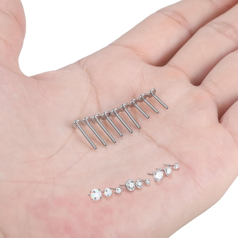 تصميم بدون خيوط - مجوهرات ثقب اللابريت التي تعمل بالضغط تحافظ على مجوهراتك آمنة وتبقى في مكانها. بسبب التوتر، لا يمكن للمجوهرات الخالية من الخيوط أن تسقط عن طريق الخطأ عند ارتدائها بشكل صحيح.