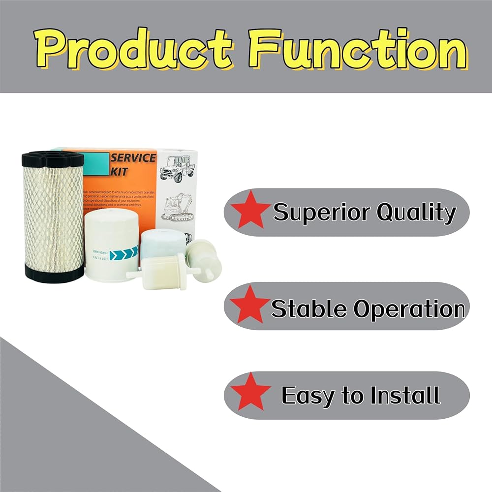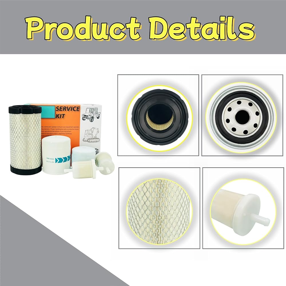 • تتضمن الحزمة: 1 × فلتر هواء + 1 × فلتر زيت المحرك + 2 × مرشحات الوقود + 1 × فلتر ناقل الحركة الهيدروستاتيكي